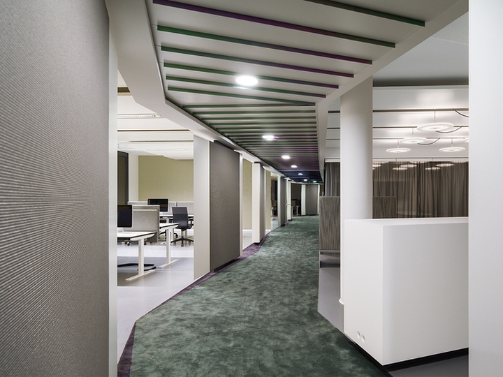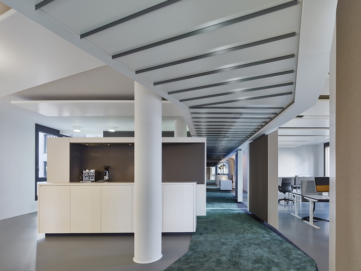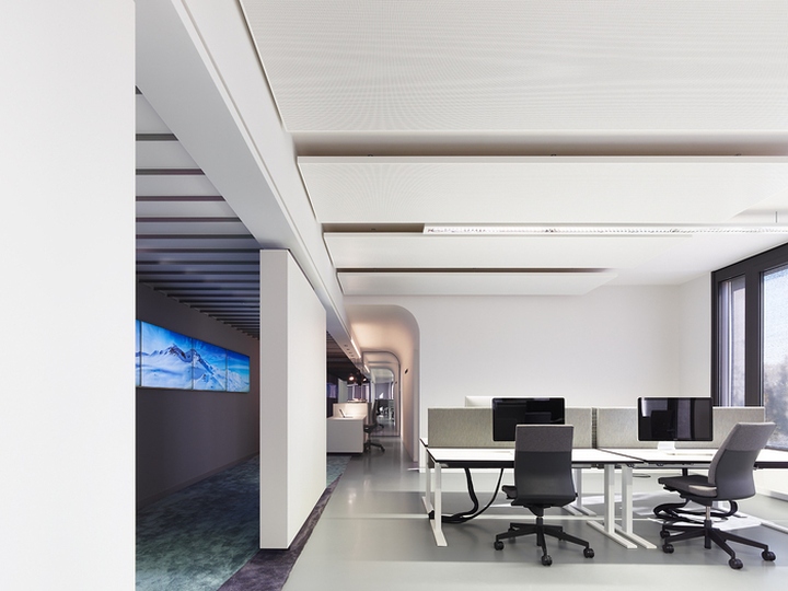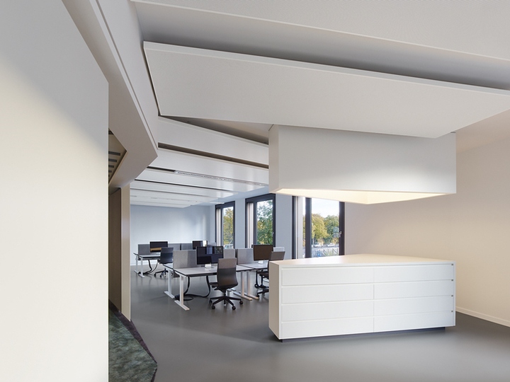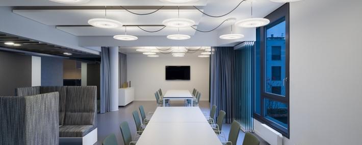带着有金属材质轻微闪光的镜像薄板,勾画出线条状的活动区域,这也是福来茨设计团队为Phoenix Design设计公司准备的整个空间基调。在办公室设计尤其是对于开放式的办公空间设计、装饰当中,最重要的决定性因素是良好的隔音系统。家具表面的软质织物、墙纸、以及窗帘,所有这一切都有助于为人们打造出一个舒适而且降噪的办公环境。开放空间的概念将多样化的工作方式,整合成为一个有机的整体。