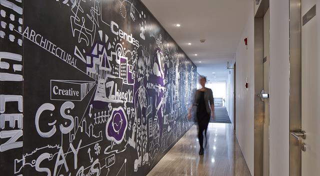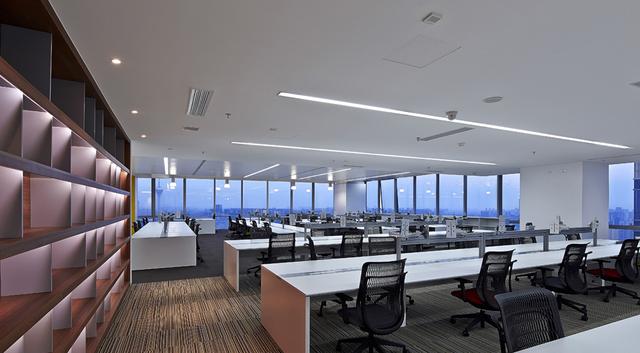 山鼎设计Cendes是一家具有国际背景的建筑设计公司,其办公室设计以极简为主线,结合材质对比来体一些现代设计原素。整个空间现代、大气,品质感极强,开敞办公区不同色彩的运用即能丰富空间的表达,也给身置其中的员工与设计的想象与灵感。从技术、工作、环境、经济四个维度出发,打造高效、灵活、科技、绿色的工作空间。