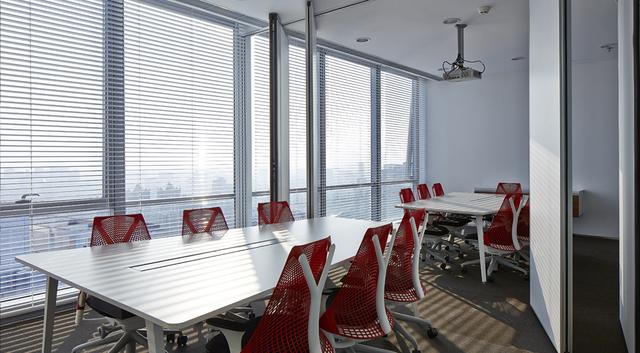 百叶窗多用于办公室中的私密空间区域,隔开性好,这种窗户是采用数片条形材料平行排列,通过转动百叶的角度来控制光线的窗。严格意义上讲百叶窗也不是窗子,因为其关闭时无法很好的密闭,因此在办公室冲击钻中必须和普通的窗或玻璃幕墙结合在一起使用,多用于办公室中的小空间窗户。
