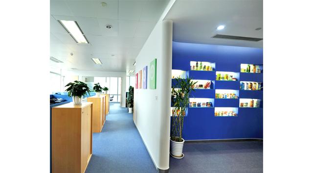 利乐包装是由世界500强企业瑞典利乐公司在中国投资的企业。新办公室最大的特点是:没有密集的办公区域,而是化成各个风格不同的小型交流室、会议室、休息室,色彩以公司的主题色蓝色为主,创造出宁静又不失活力的空间氛围。