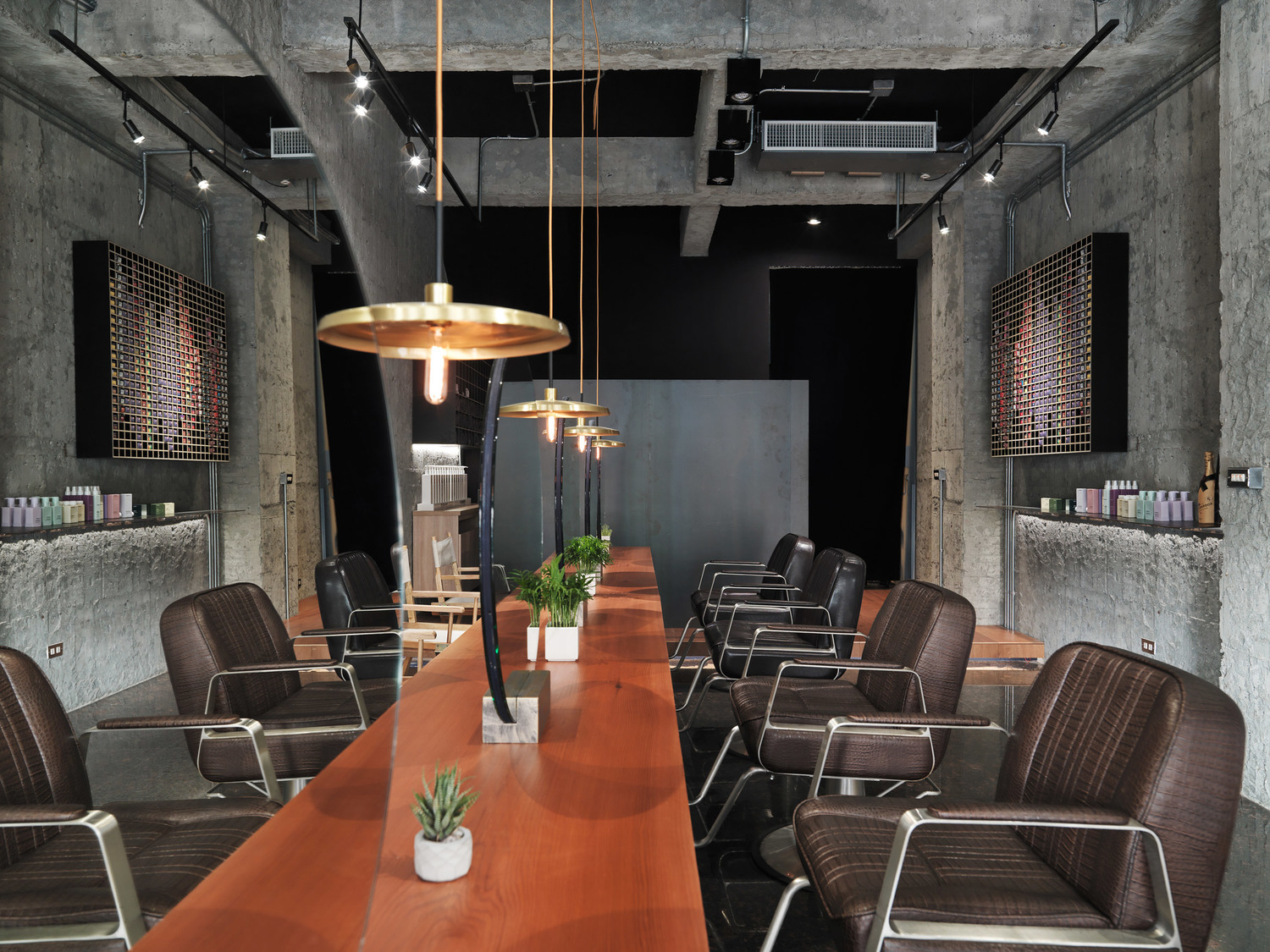 台湾这家发廊理发与美发的顾客们都会围绕着在长长的桌子、面对面的坐着,长桌是由台湾当地的工作室Soar Design专门定做的。这个位于台湾省、彰化市的美发沙龙有是采用独特的平面布置感觉很宽敞。空间设计上充分利用各个可使用空间,空间设计师们没将房间切割成一个一个分开的工作台,而是选择围绕着公共的桌子来组织美发沙龙中的区域。
