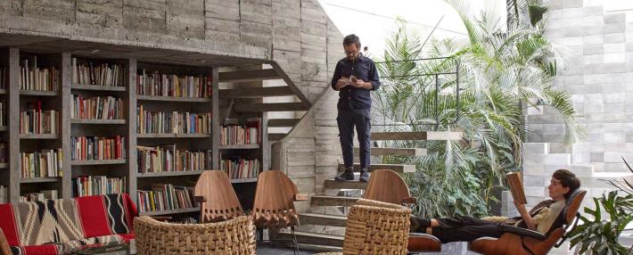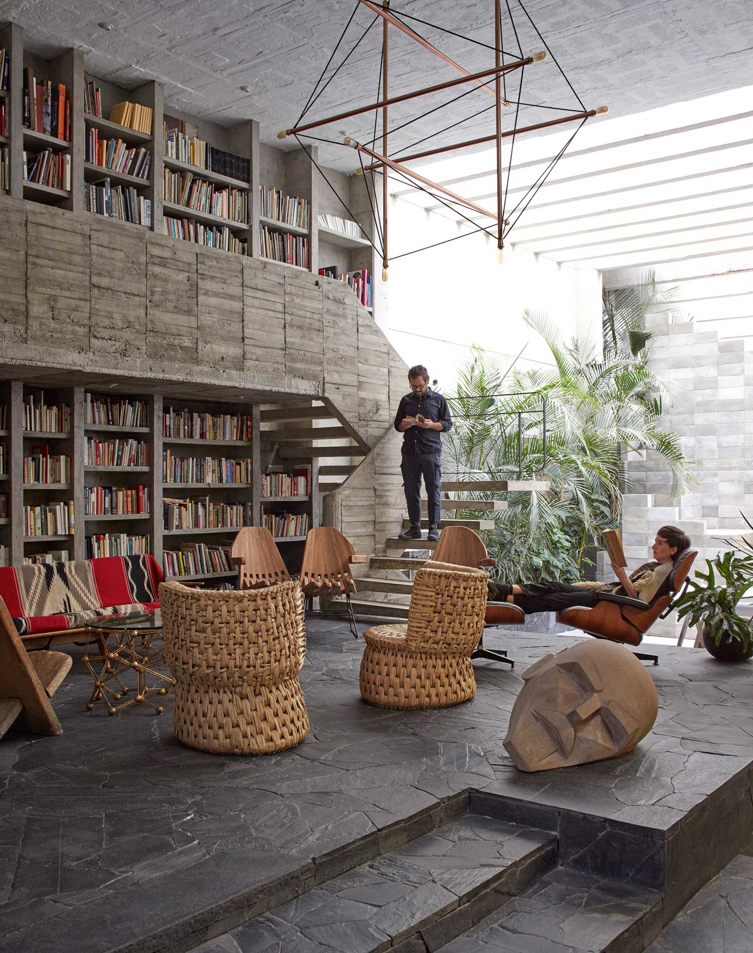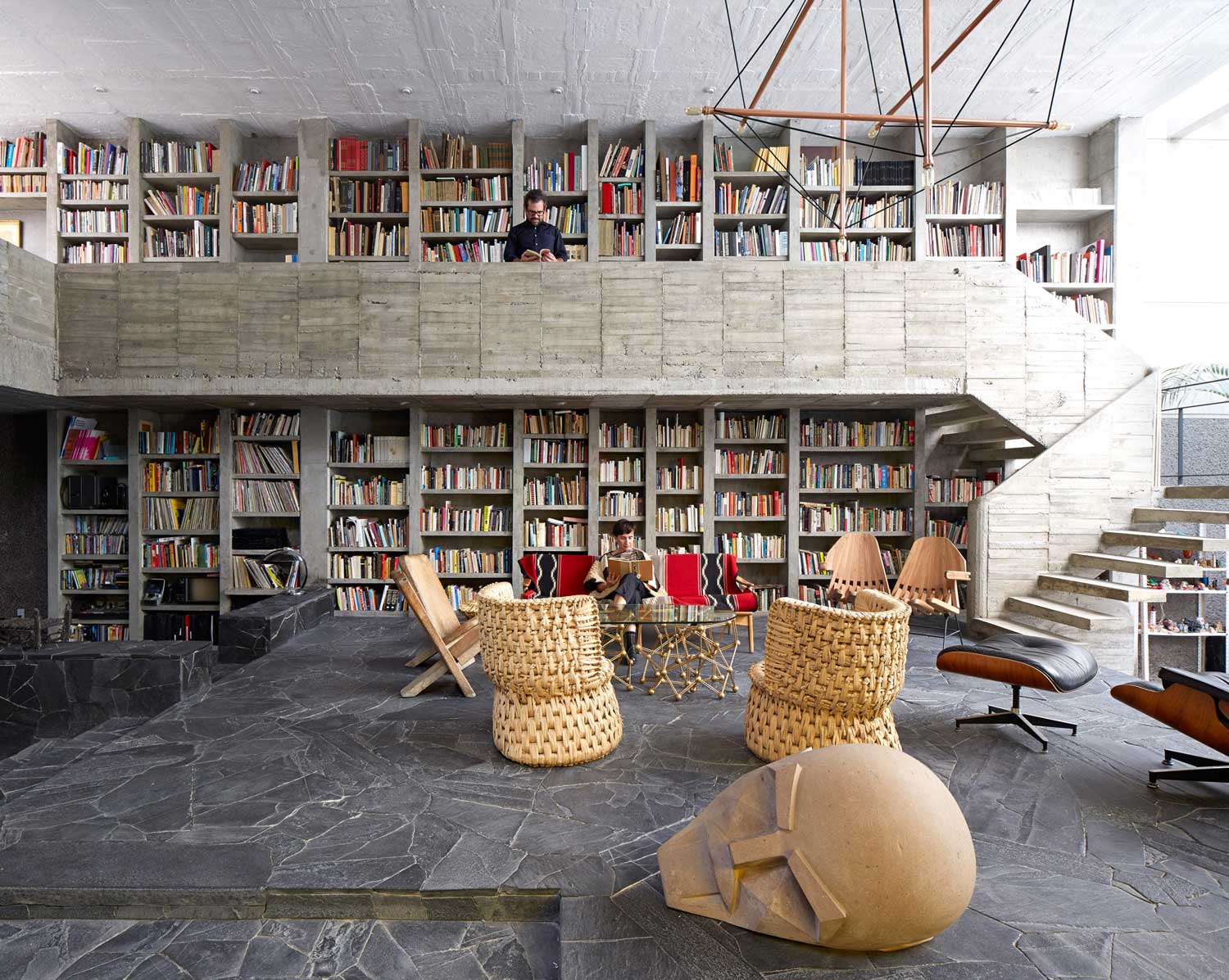 这是墨西哥城的艺术家 佩德罗·雷耶斯 和他的时装设计师妻子 卡拉·费尔南德斯的工作室和家,这对夫妇将意想不到的洋红色、黄色和灰色作了和谐、生动的搭配。