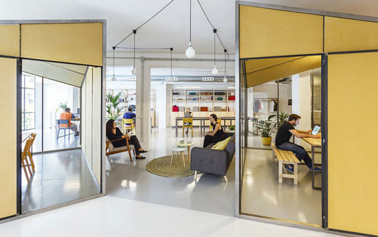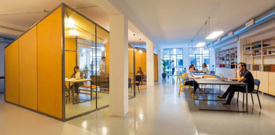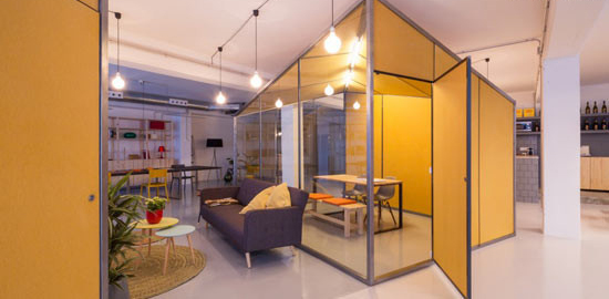 从色彩的搭配到绿植和光源的配合,办公室整体呈现除了明快活泼的样貌。坡形屋顶的方块盒子在结构的允许下最大化的扩充了空间的容量,同时也让间隙的空间得到合理的利用,让员工可以闲逛和休息。