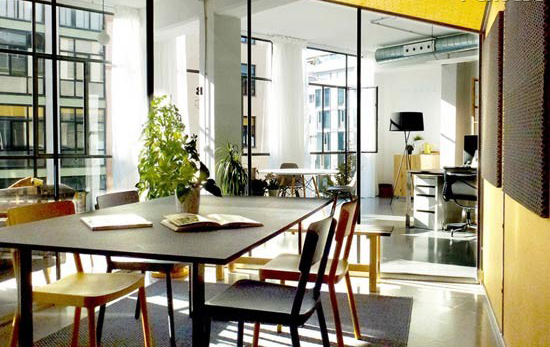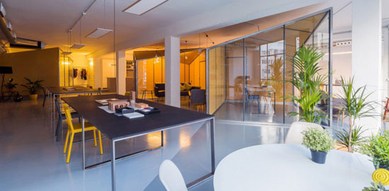此空间是一个由钢筋混泥土柱子和悬梁支撑的300平米大开敞空间,建筑结构上形成了三条中心轴线,方便了设计师对于功能区域的划分和设计。