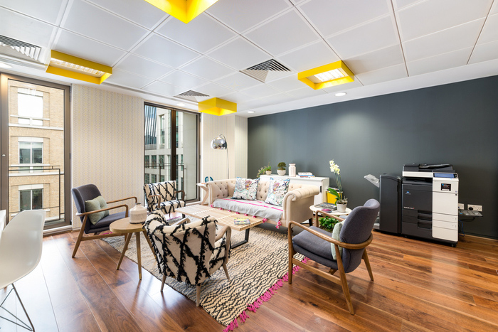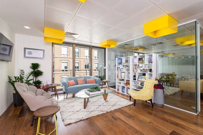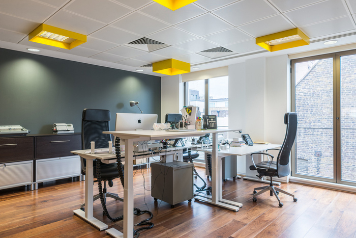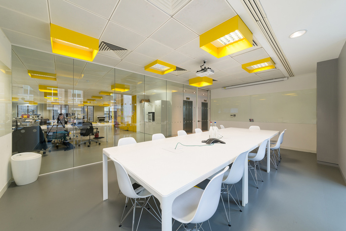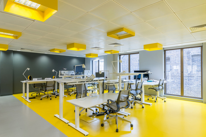 Constructive Space公司设计的这间办公室位于伦敦,业主的设计想法是提升职员的幸福度,提升工作效率,激发创新思维的高端办公空间,所以整个办公空间的设计是将办公室的正式庄重和居家的舒适感觉相融合显得非常有创意,明亮、惊人的亮黄色灯具也是间办公室的最大亮点之一。我们一起来欣赏一下~