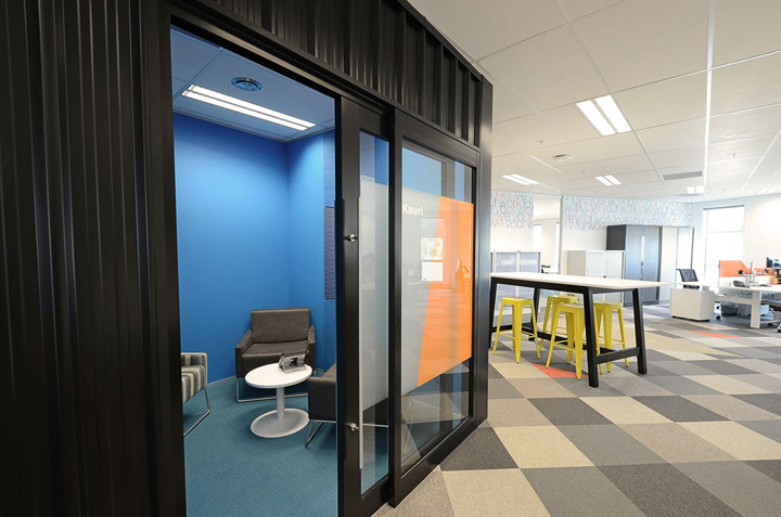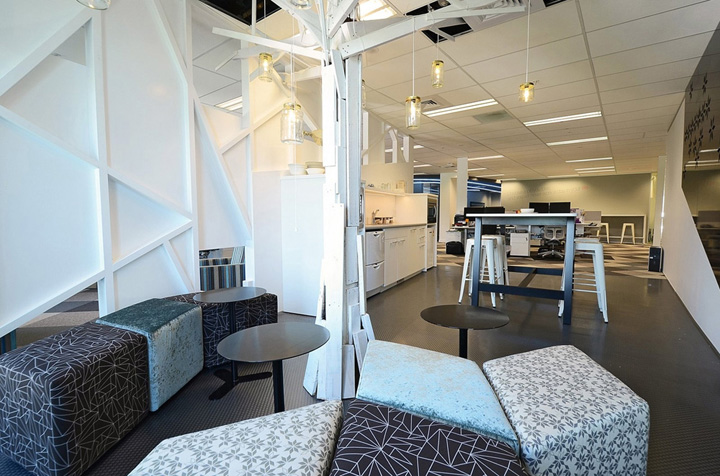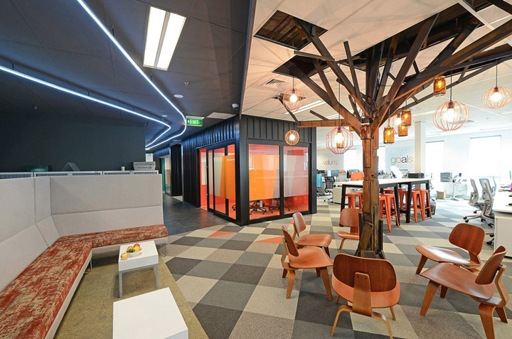 澳大利亚知名会计软件公司MYOB(智管)是一家全球领先的财务管理公司。今天德垦办公装饰继续推出MYOB位于新西兰奥克兰的办公室。运用多元化的设计创建一个完全平等开放的高端办公空间。这里没有传统的主管办公室,空间设有220个工作点,这样人人都拥有自己的办公桌。Yellow 6设计团队打造了30多个休闲空间穿插于工作区中,以满足团队协作、交流、头脑风暴或独立思考。本案还有一个很有趣的设计,设计团队在空间里种植了一些“树”,这些象形树以不同的色彩分别代表春夏秋冬四个季节;同时生机盎然的“大树”也寓意着品牌枝繁叶茂、根植澳洲遍及全球的美好愿景。