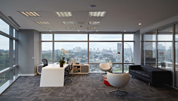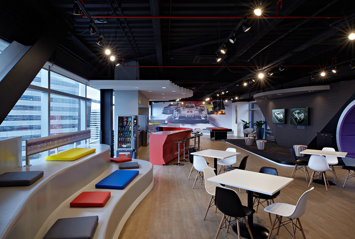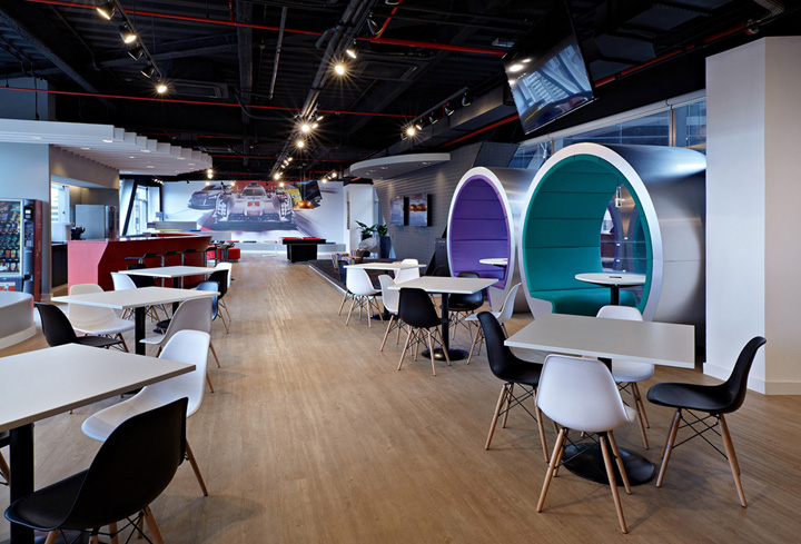 总面积约1,500平方米巴西保罗奥迪高端且极富创意的办公空间由Informov建筑工程公司全力打造。本案例设有大量的会议室空间、专注思考的空间、非正式会议室和协作空间等完美的应对员工多元化的工作需求。入口位于14楼,从这里就可以感受到极具视觉冲击力的丰富细节设计。四部抵达奥迪办公室的电梯都张贴有超酷的奥迪车型图片。一场酷炫而又精彩的奥迪之旅由此拉开序幕。入口位于14楼,从这里就可以感受到极具视觉冲击力的丰富细节设计。四部抵达奥迪办公室的电梯都张贴有超酷的奥迪车型图片。一场酷炫而又精彩的奥迪之旅由此拉开序幕。在本案协作区设计有“飞轮”卡座,金属板的银色外壳与奥迪未来感的酷炫设计相契合,既强化了空间主题也丰富了空间的视觉元素。现在让我们一起走进位于巴西圣保罗的这家奥迪高端办公空间~