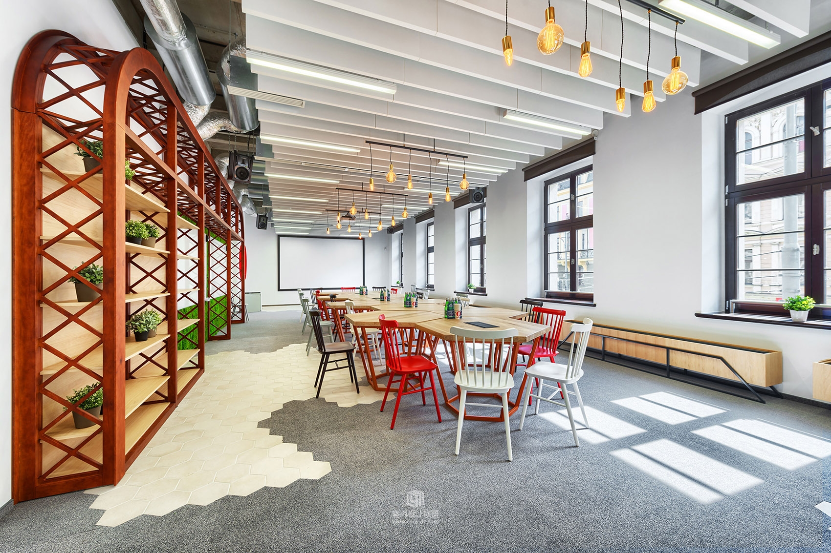 来自挪威的著名浏览器公司Opera Software公司波兰分部办公室位于Wroclaw市中心两座历史悠久、互相连通的联排住宅之内,其室内设计给mode:lina事务所的建筑师带来了极大的挑战。而一切因一封题目为“我们想要世界上最好的办公室”的邮件而起。虽然Opera Software公司总部位于挪威,但位于Wroclaw的公司分部也与城市有着密不可分的关系。而且在基地附近,被称为“玻璃屋”的商业中心Hieroniumus在Wroclaw当地居民的生活中有着极为特殊的地位。Wroclaw的城市风貌带给了建筑师许多灵感。而在考虑了员工的偏好和城市氛围后,建筑师最终确定其室内空间将以极具创意的工业风,即LOFT风格为主。