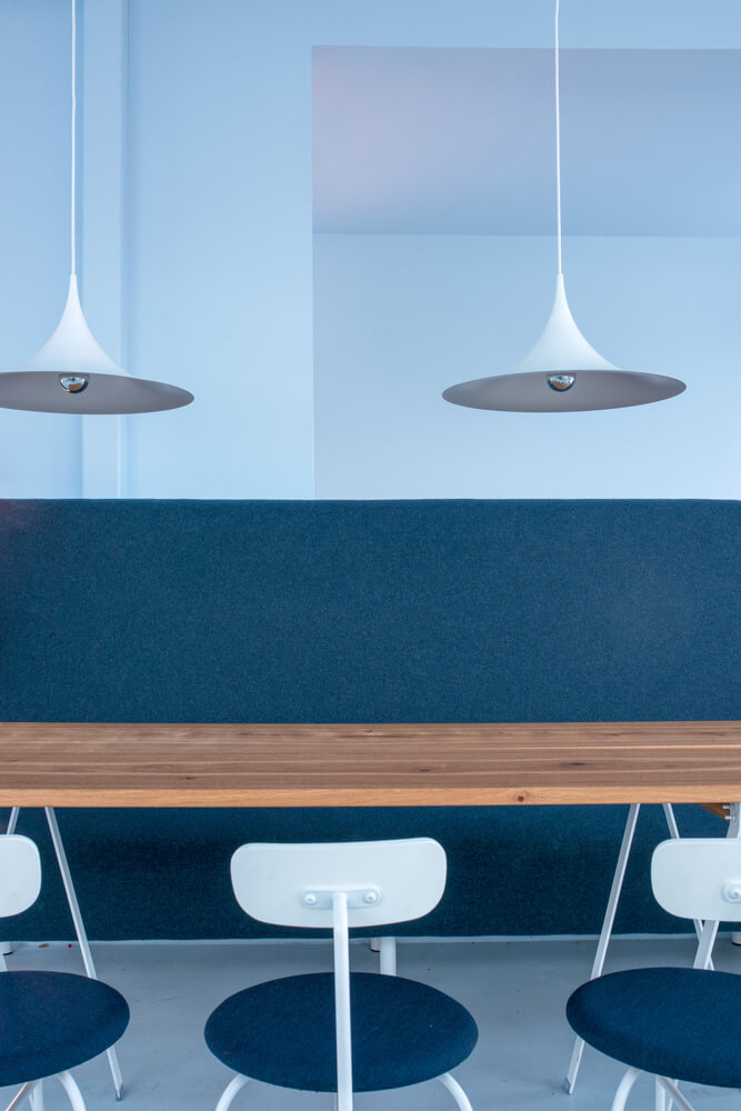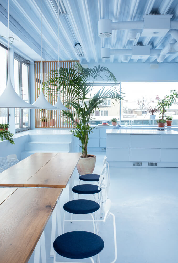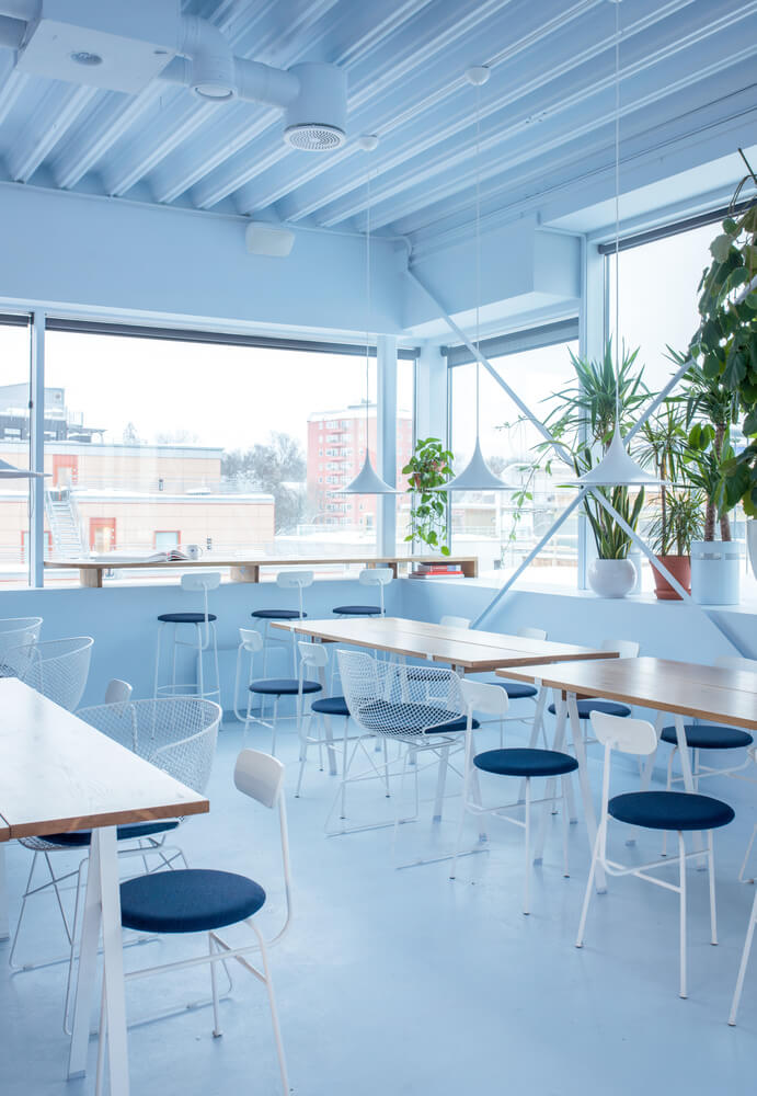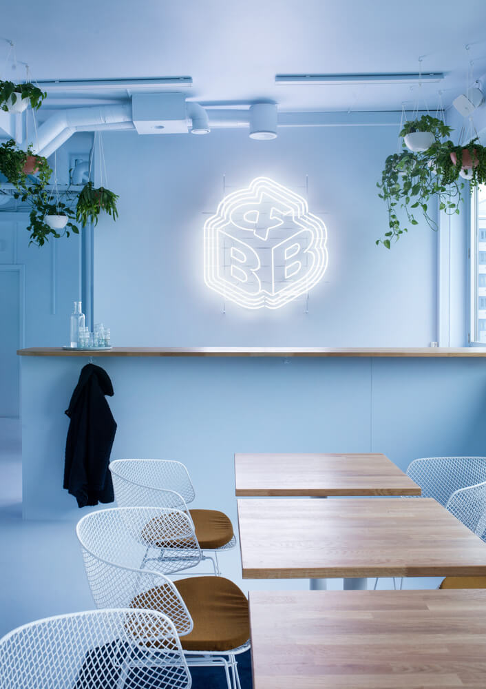 以下案例是由挪威设计工作室Kvistad设计升级的Bakken&Bæck在奥斯陆的总部办公室。设计的理念以及设计的很多想法都来自航天飞船。所有的地板、墙壁和天花板都漆成相同的颜色,给人一种所有东西都是用同样的材料铸成的感觉。部分客房的地板铺有地毯,可覆盖墙壁,适合零重力环境。许多细节都由细线支撑,类似于失重状态。一起来欣赏下吧