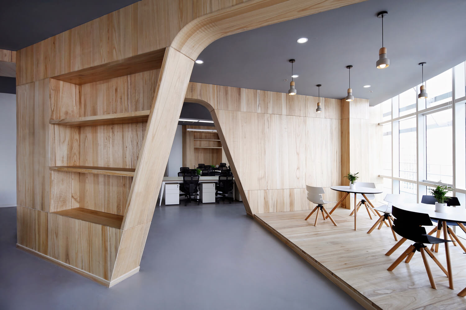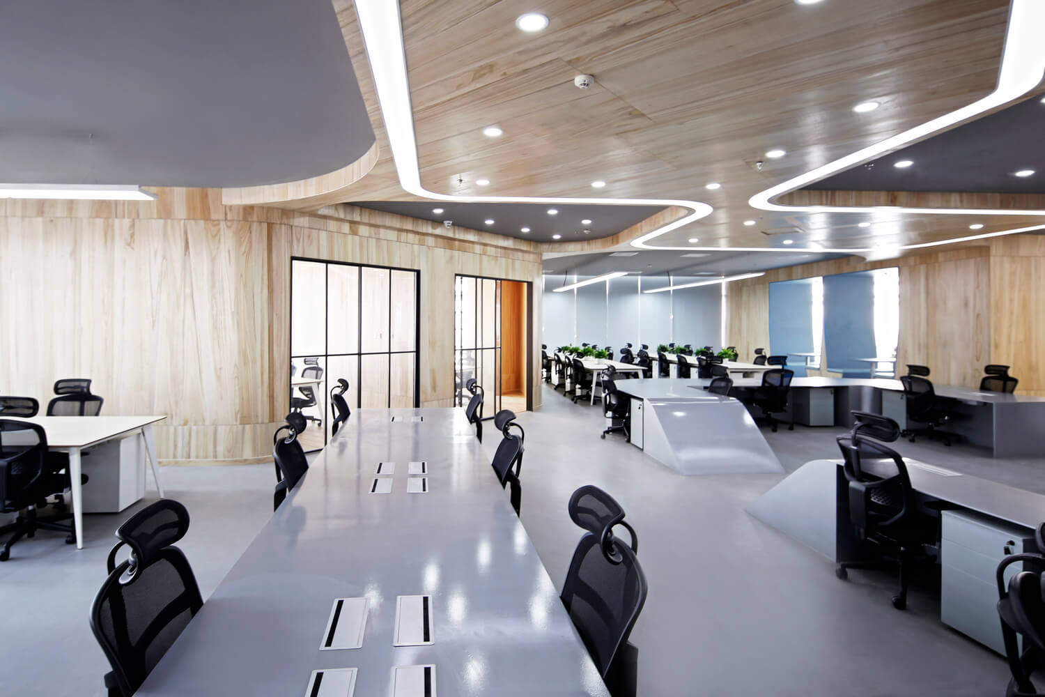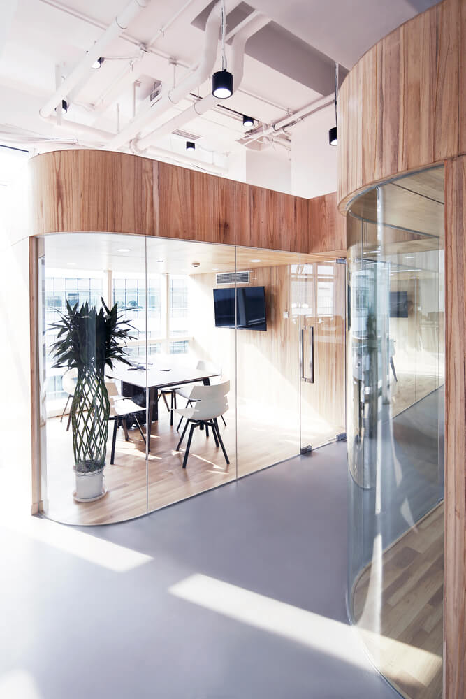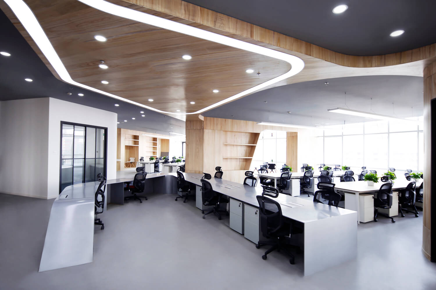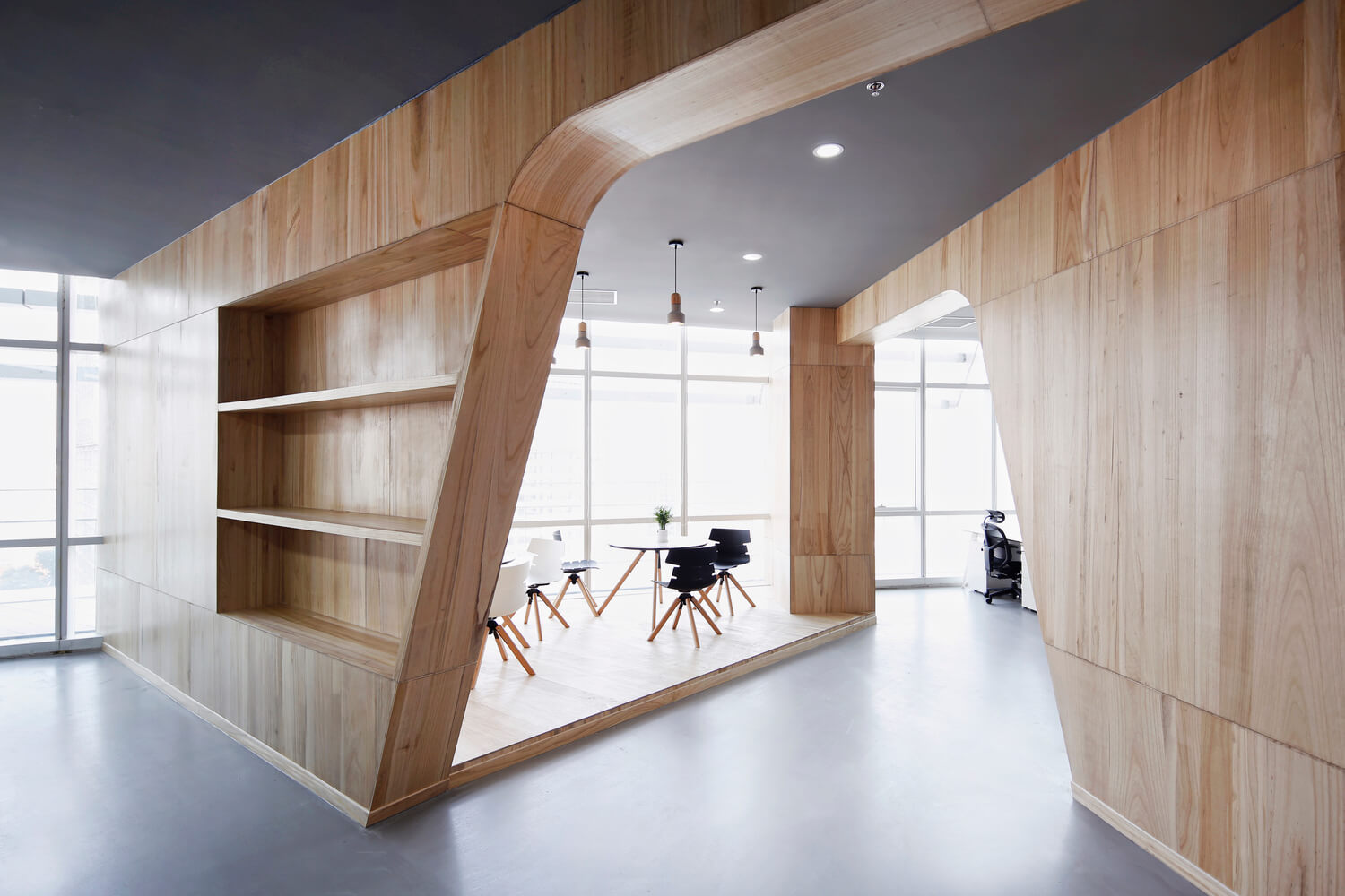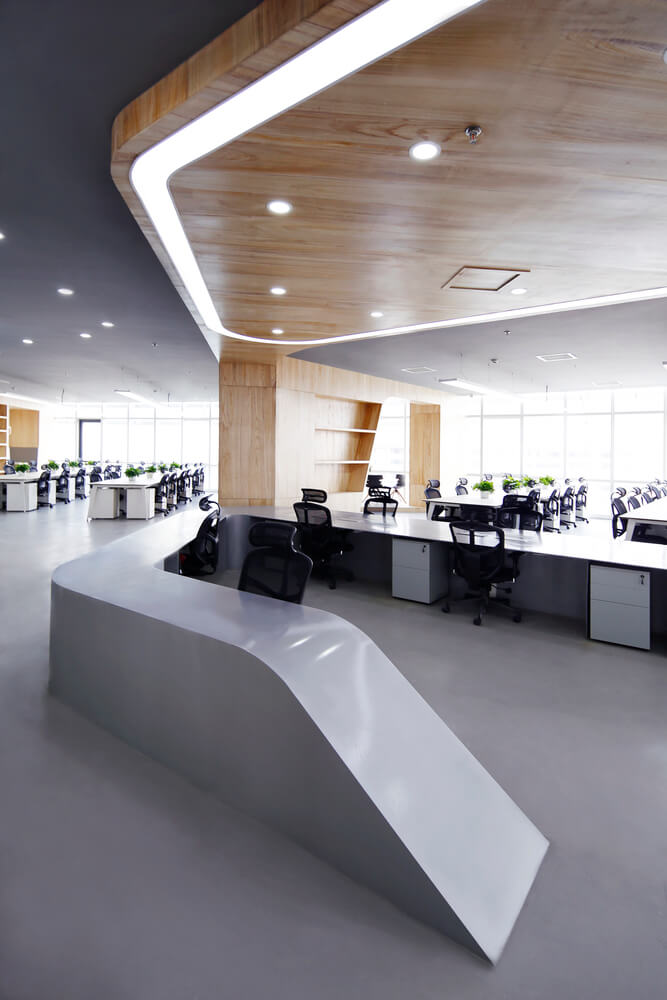 “让金融有温度”,根据理念,设计风格。项目客户是一家年轻的互联网金融公司。在设计之初,创造一个简单、透明、平等的办公空间是先决条件。因此,设计的理念强调了平等和自由的地位,去掉了传统的隔间和封闭感。整个办公室是个性化的曲线模式,遵循由扎哈·哈迪德设计的银河Soho的概念。它不拘泥于传统的内向和孤立的分工模式,而是希望创造一个像公园和游乐场一样的快乐气氛。一起来欣赏下