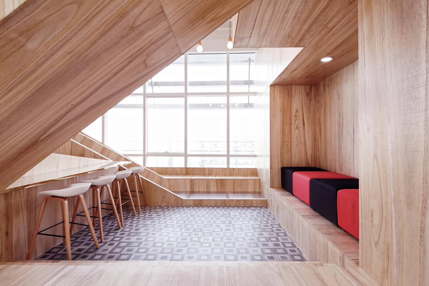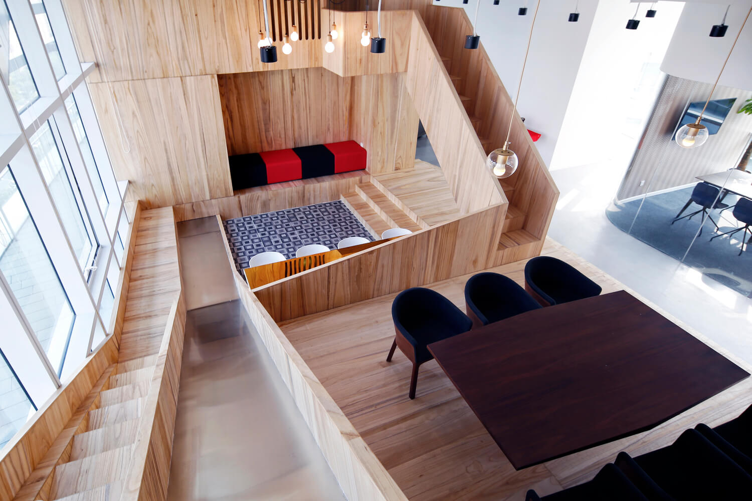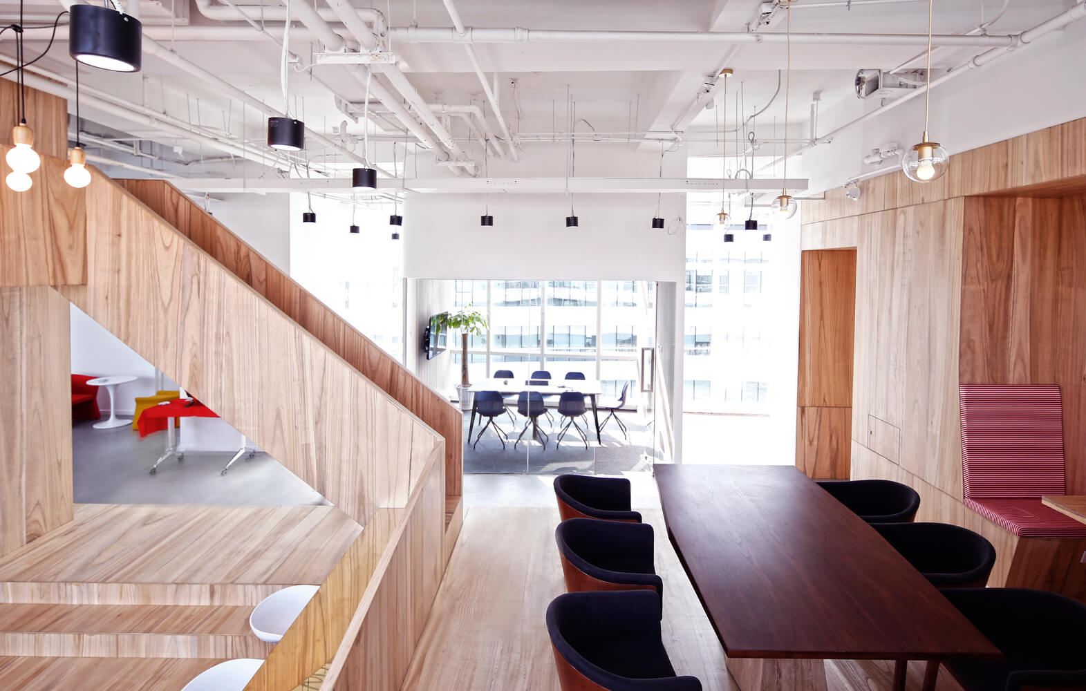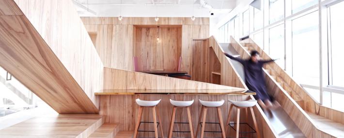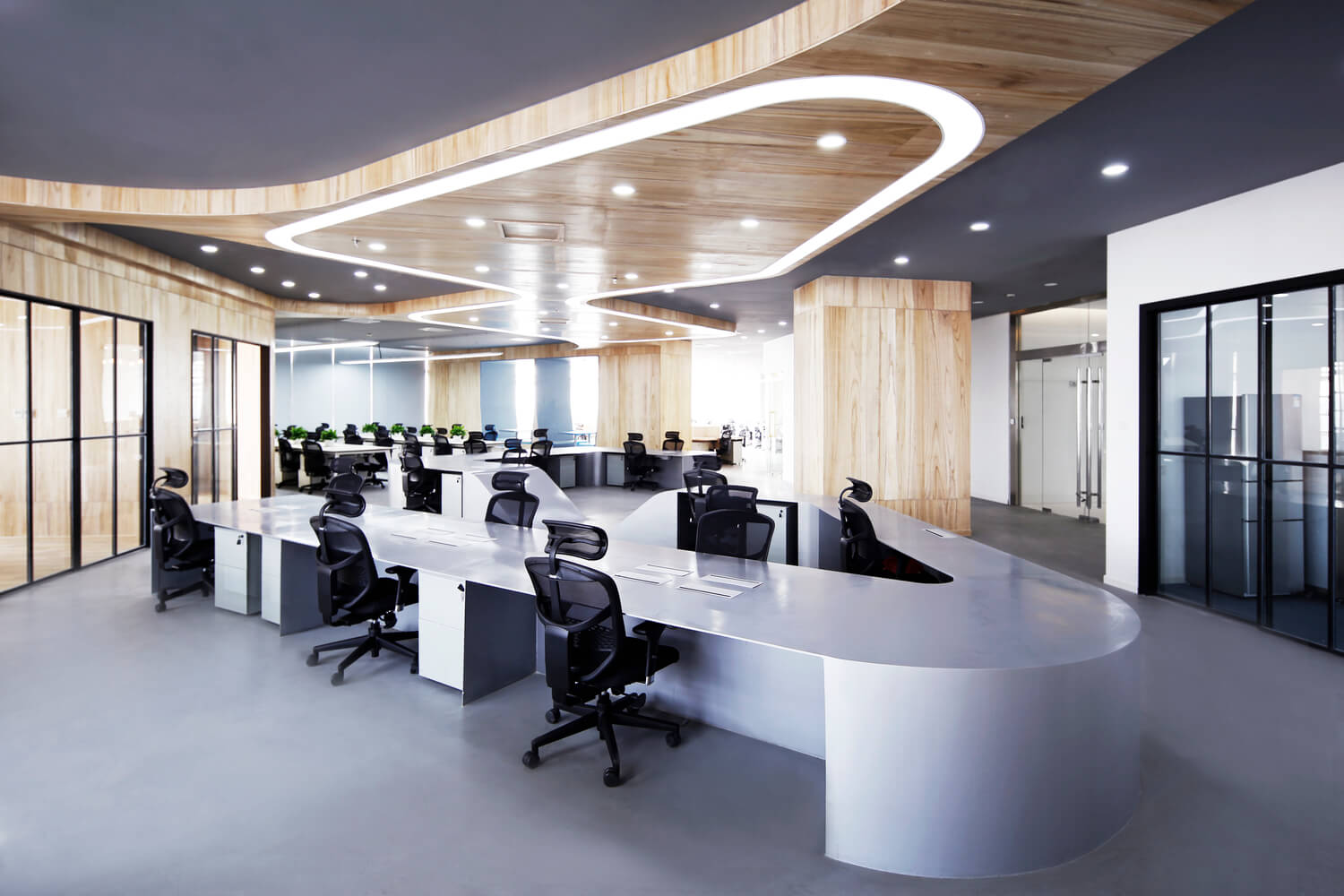 “让金融有温度”,根据理念,设计风格。项目客户是一家年轻的互联网金融公司。在设计之初,创造一个简单、透明、平等的办公空间是先决条件。因此,设计的理念强调了平等和自由的地位,去掉了传统的隔间和封闭感。整个办公室是个性化的曲线模式,遵循由扎哈·哈迪德设计的银河Soho的概念。它不拘泥于传统的内向和孤立的分工模式,而是希望创造一个像公园和游乐场一样的快乐气氛。一起来欣赏下