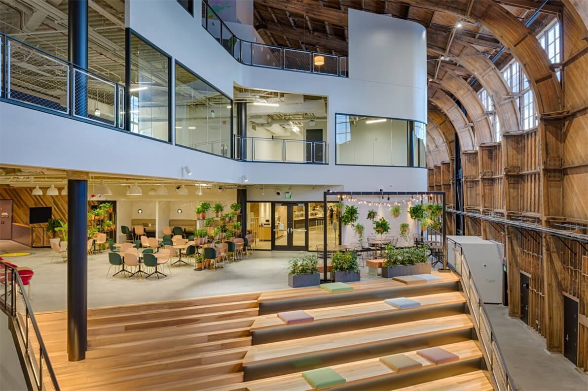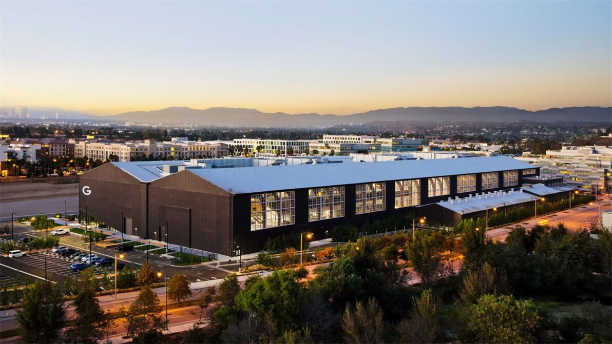 今天的案例又是改造而成,美国工作室ZGF Architects将这个20世纪40年代洛杉矶飞机库的内部改造成了谷歌的办事处,拥有开放的工作区、高架走道和裸露的木梁。该办公室被命名为Google Spruce Goose,位于洛杉矶国际机场附近的普拉亚维斯塔地区。项目需要对这个大型木框架飞机库进行大规模的翻修,这个飞机库于