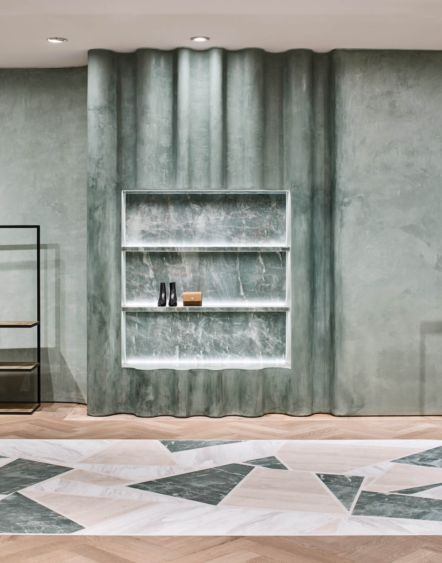 由Akin Atelier设计的CAMILLA AND MARC在悉尼的Westfield Bondi Junction一家新的旗舰店,室内采用了经典的布局,一系列房间将顾客从公共空间转移到私人空间。在使用材料方面,设计师在Volakas,Smeraldo石英和经典的洞石中结合了定制的Palladiana水磨石,并由定制的彩色人字形木地板镶边。黑钢固定装置与新的意大利Nubuck皮革架子作为悬挂和展示使用。试衣间悬挂着由Maharam设计的奢华天鹅绒窗帘。Nicos Zographos的皮革躺椅和长椅为零售空间增添了住宅的色调。一起欣赏下
