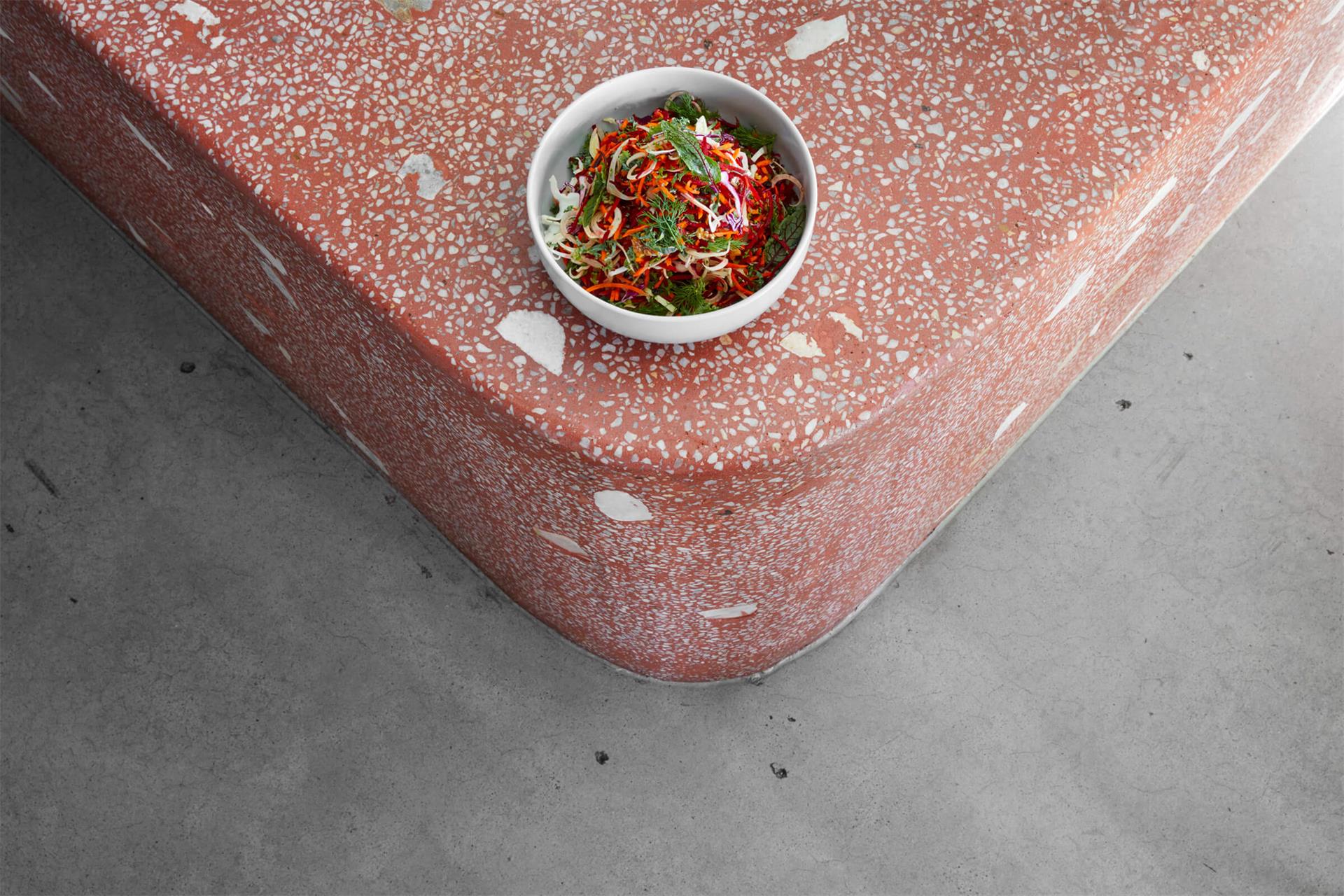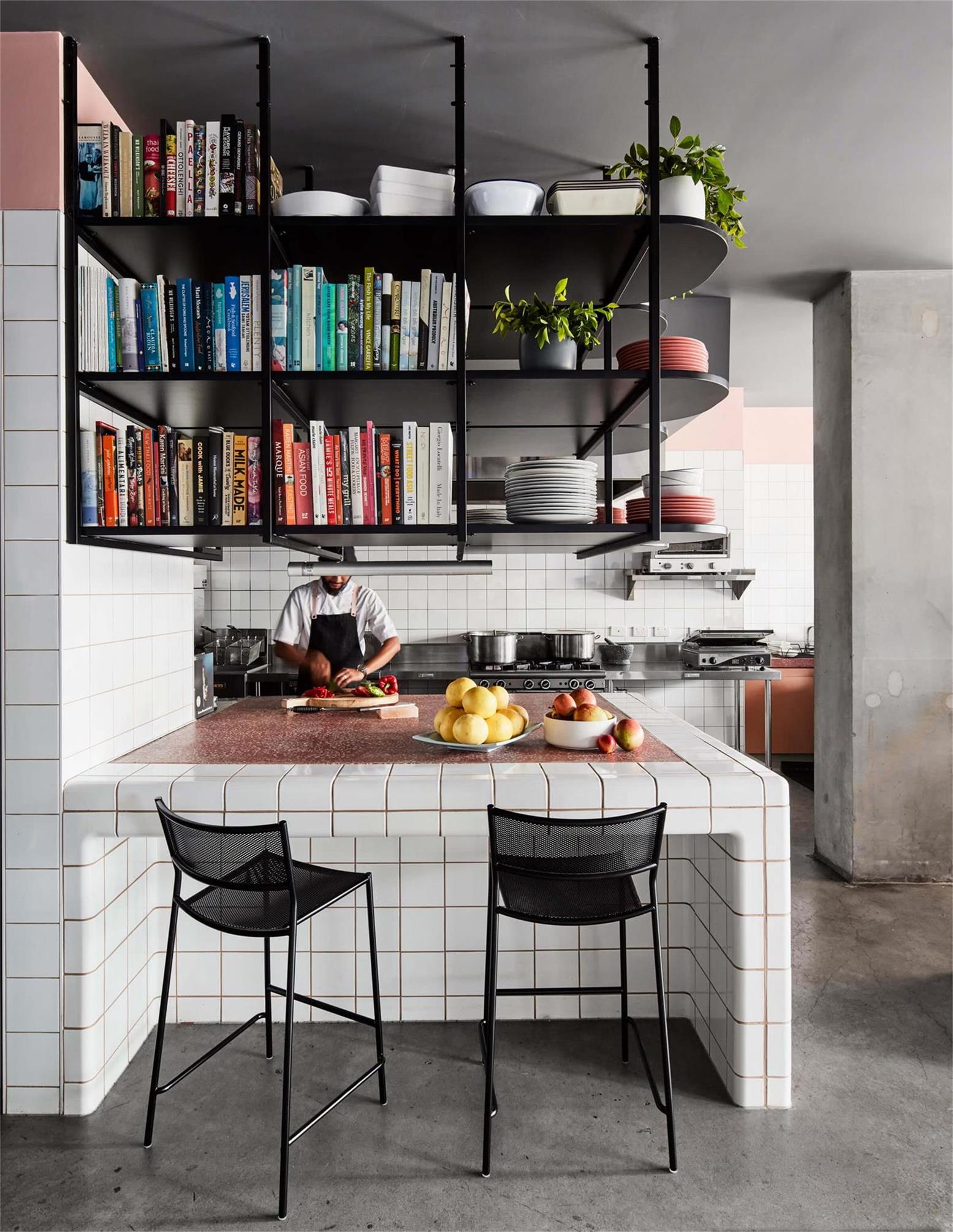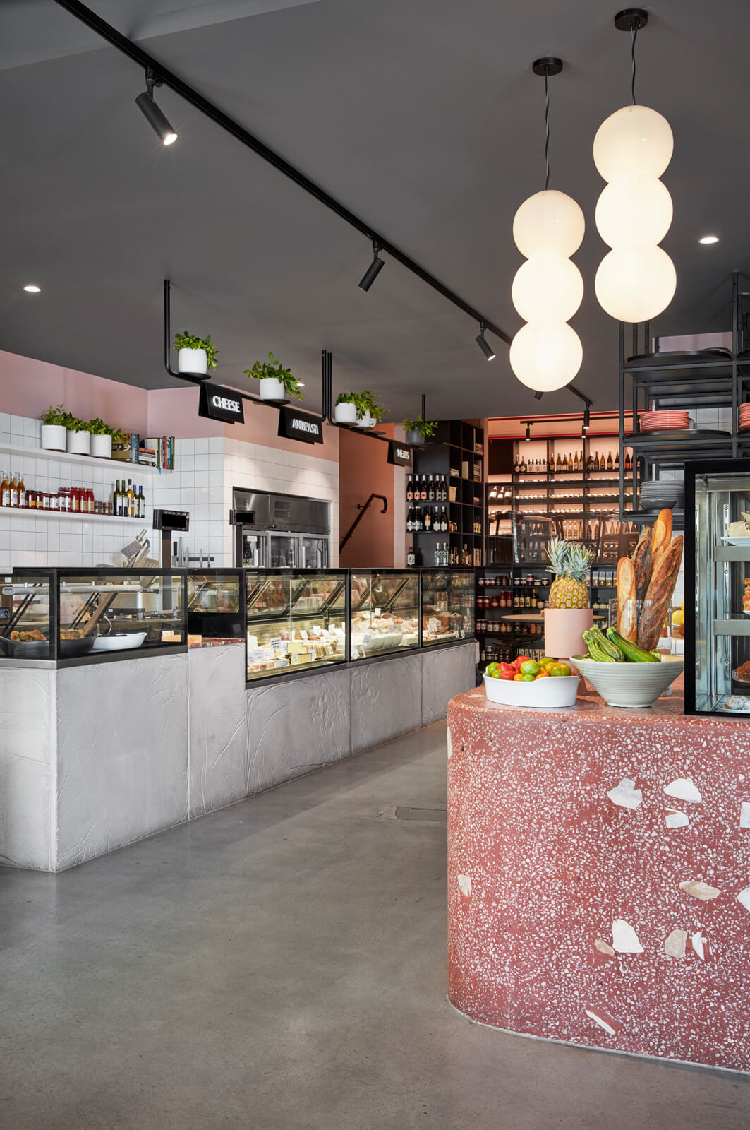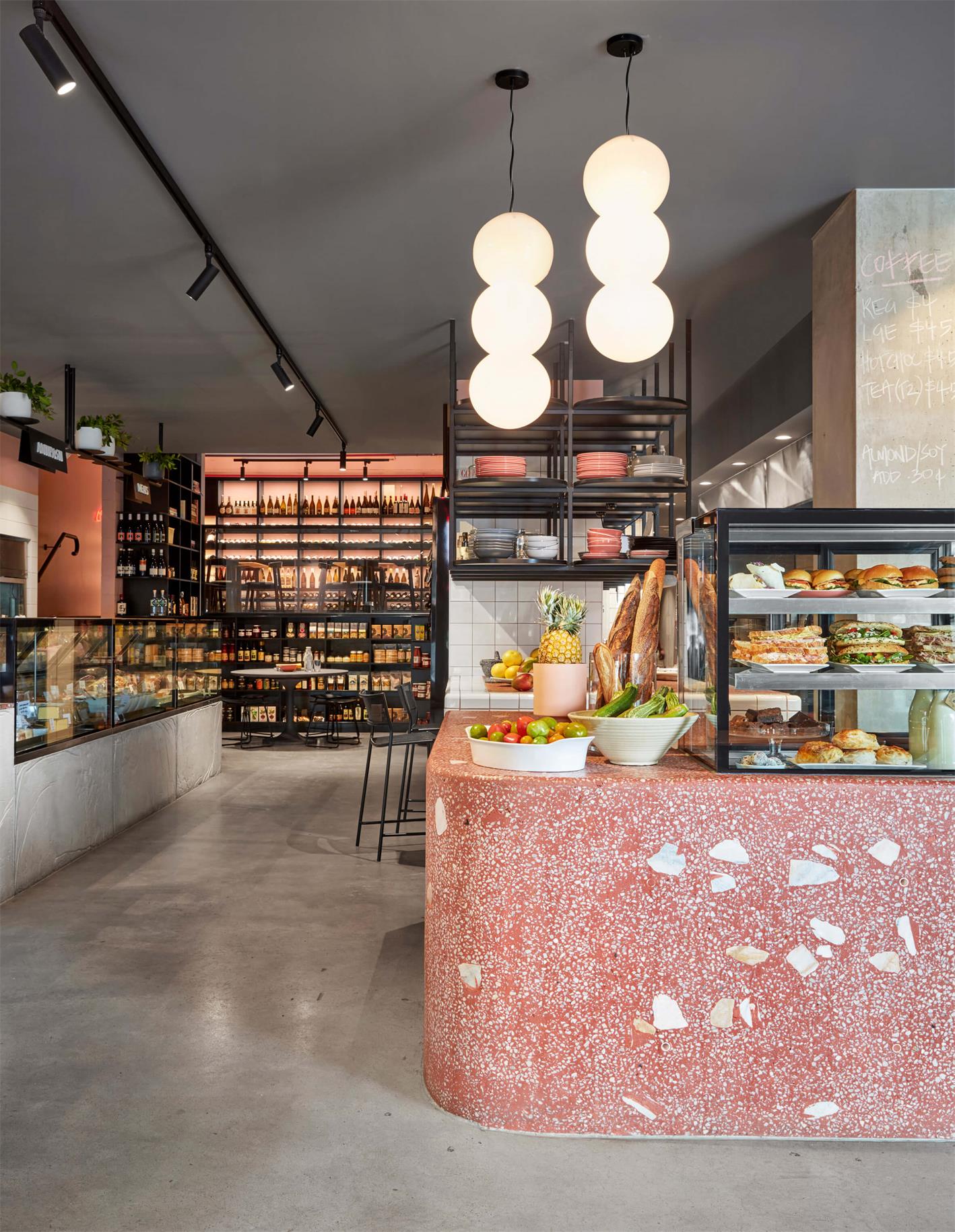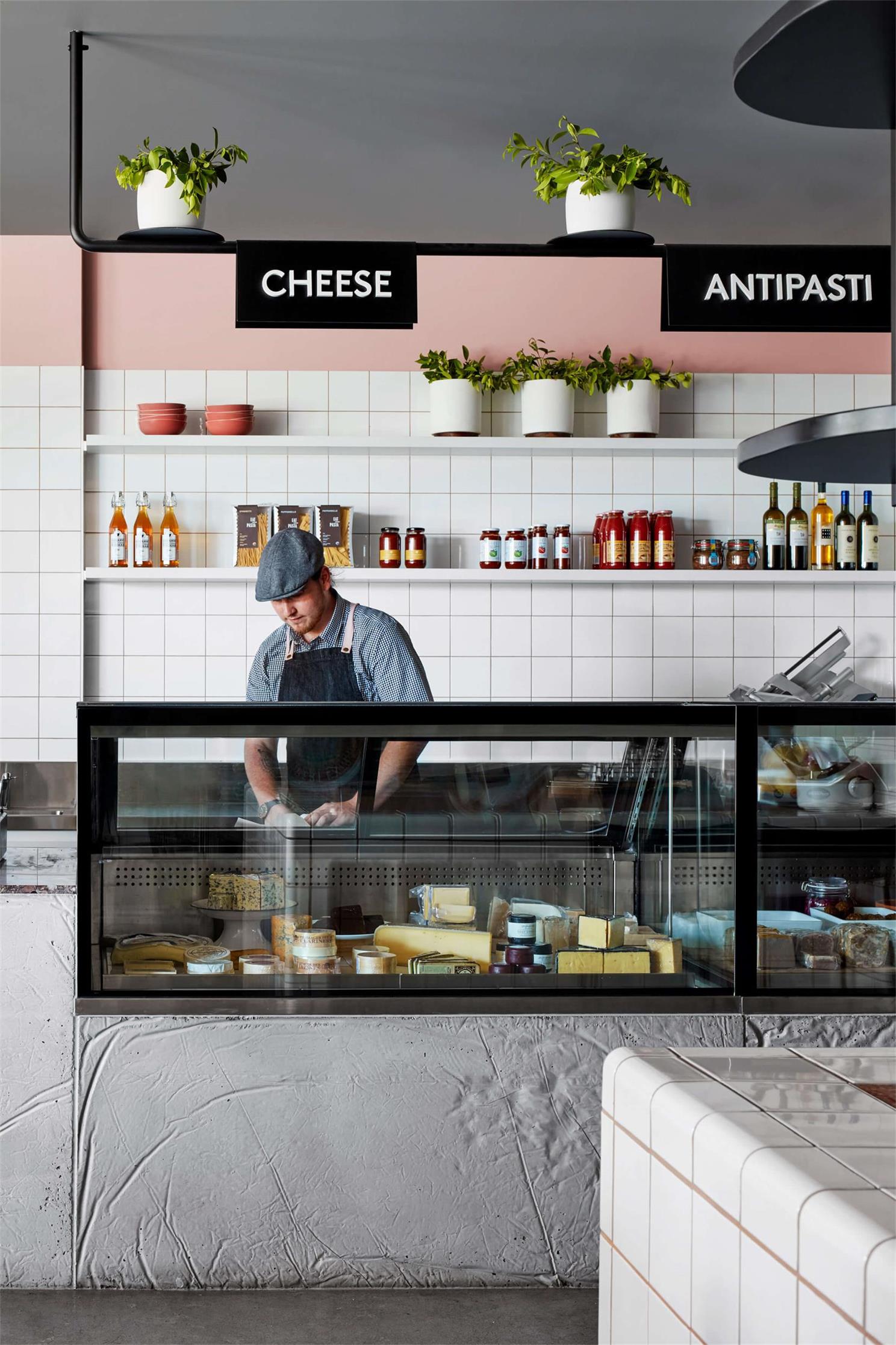 这是一家会让人感觉很有食欲的餐厅。Hunter & Co Deli位于墨尔本的South Yarra街区,由当地工作室Mim Design设计,其设计反映了主要的熟食食材。熟食区的柜台由模制混凝土制成,表面带有纹理,让人想起camembert奶酪。地板被磨平,墙上铺有干净的白色瓷砖,瓷砖表面是陶泥。周围的墙壁被涂成粉红色,与待售的熟香肠和柔软的熏牛肉的颜色相得益彰。一起欣赏下