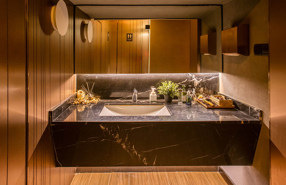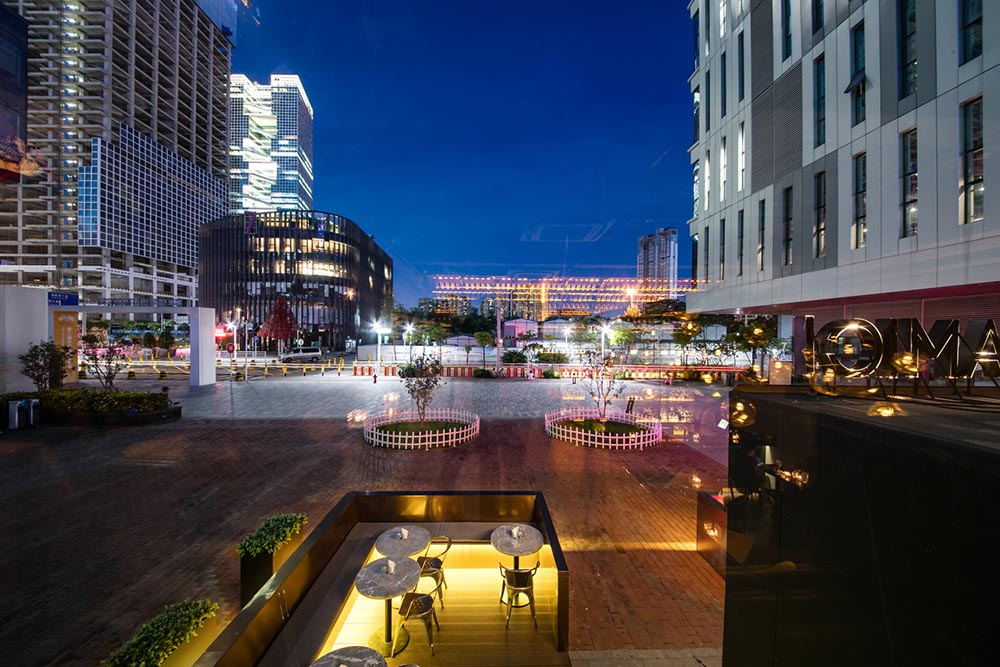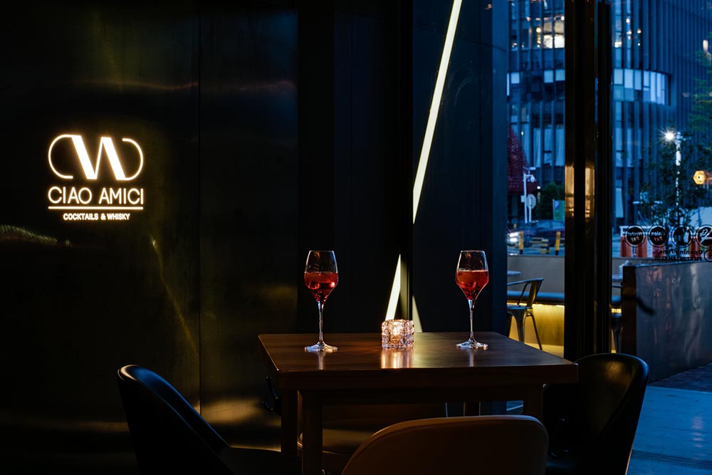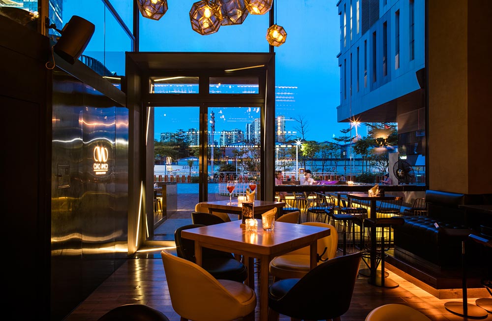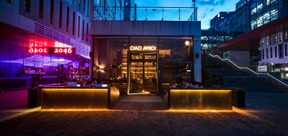 今天推荐的案例是由合吉空间艺术规划执行,项目位于中国深圳南山区软件产业基地的一座独栋建筑物。店名取自意大利文的招呼语“Ciao amici”。整体设计以金色为主调。柔和的金色光芒流动在五个主要区域:空间立面,吧台高墙,夹层座位区,VIP包间以及化妆间。完整地呈现设计主题的延伸,以及达到各个区域之间的美感和谐。欣赏下图