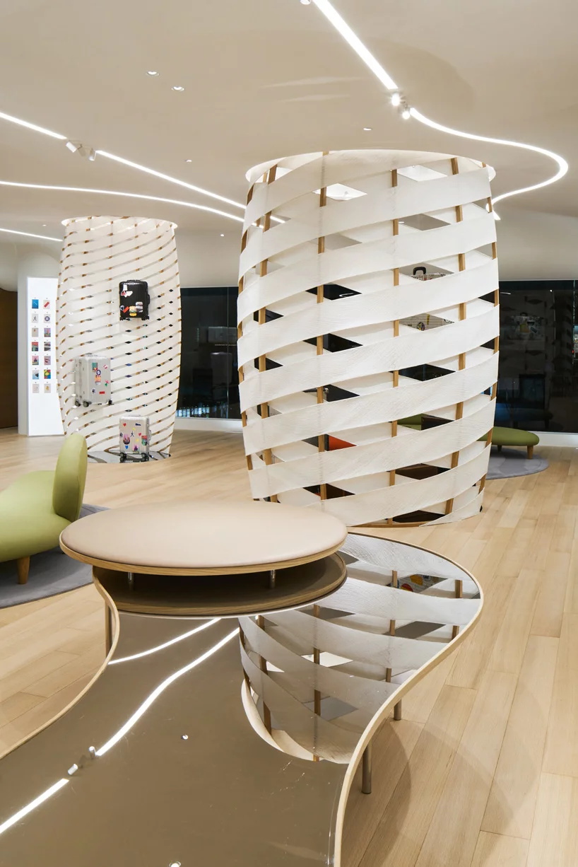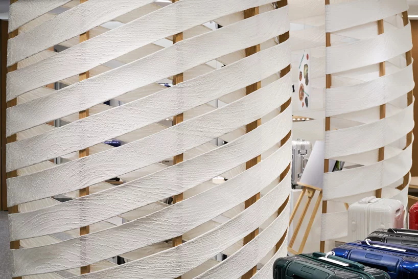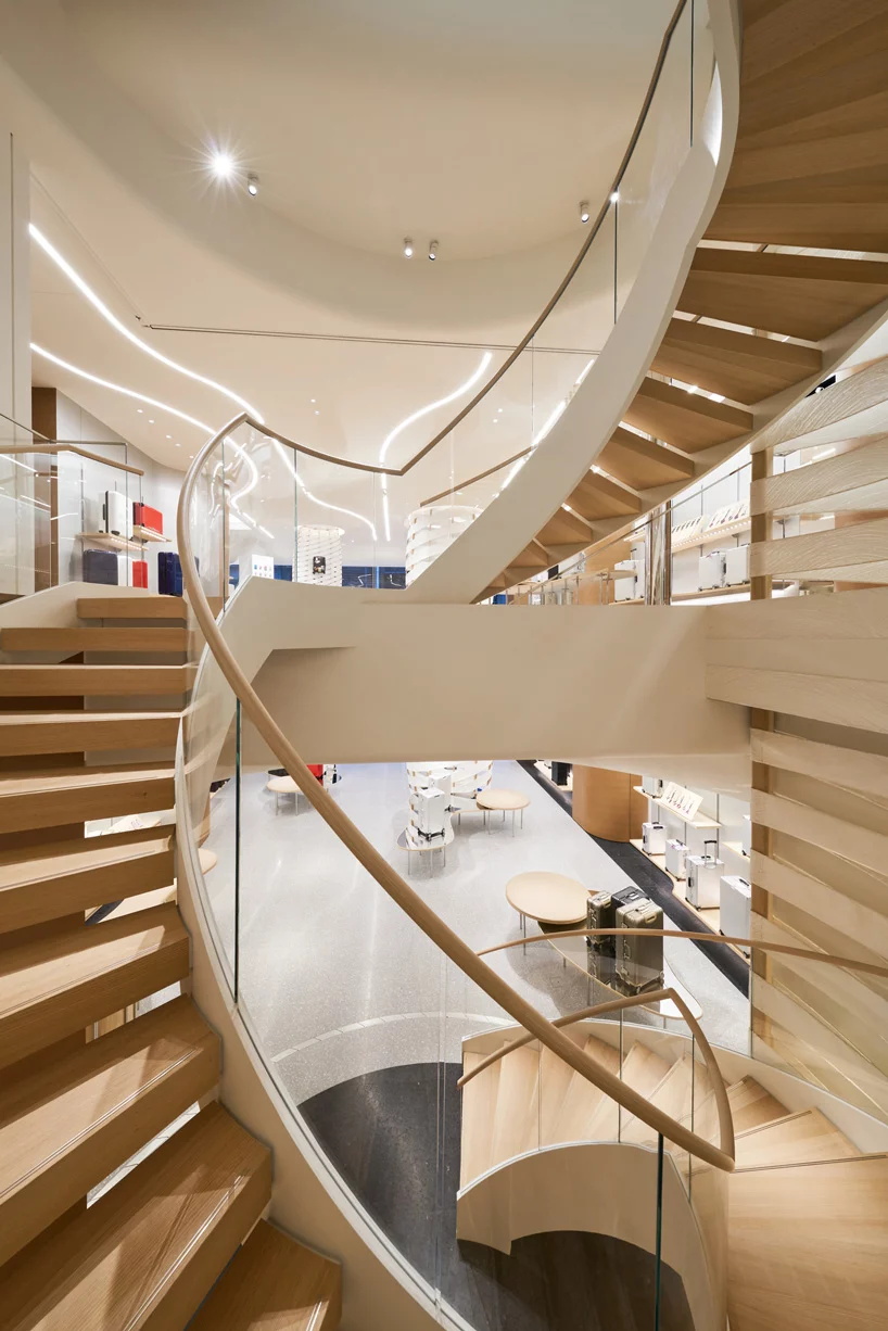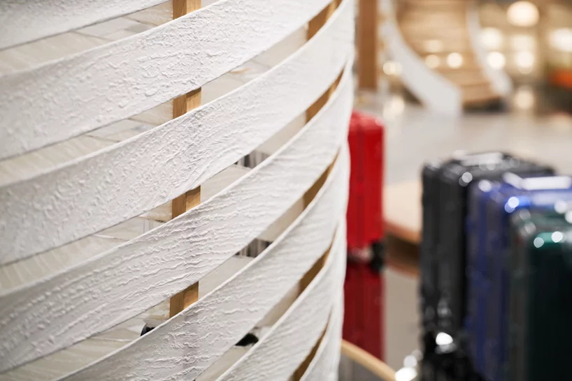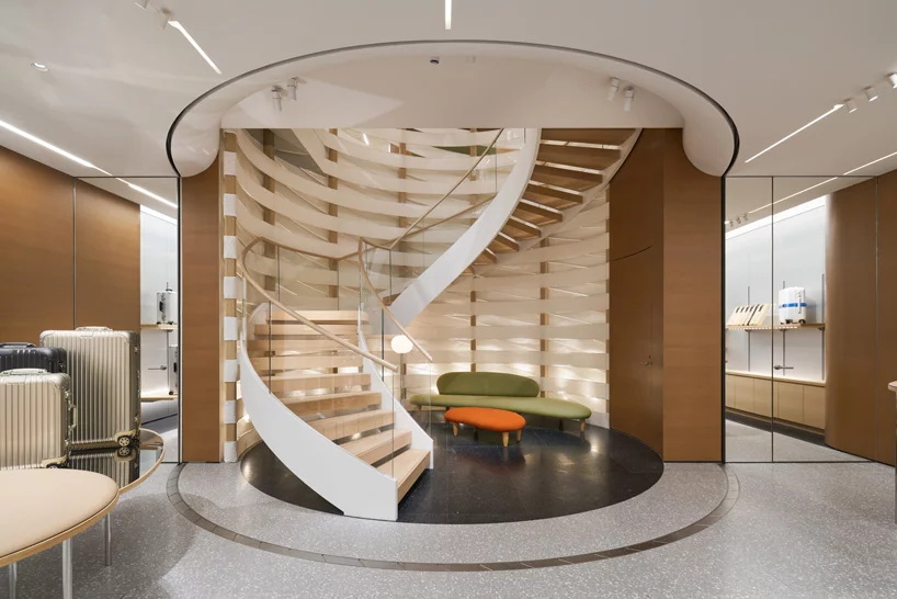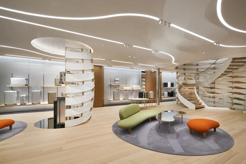 今天分享的案例是一家由vienna-based design & architecture labvert完成设计的位于东京银座的主购物街上的RIMOWA旗舰店。500平方米的零售空间将西方设计与日本文化传统融合在一个简约的空间中,呈现出德国传奇箱包制造的精髓。labvert创造了一个有着禅意风格的室内空间,借鉴了日本的岩石花园,尤其是著名的ryoan-ji禅意花园。宽敞动感的线条贯穿整个商店,编织造型线垂直连接两层楼,在空间内创造一个吸引点。一个旋转的楼梯通向上层,作为流动线条的延续,在那里,顾客可以找到客户服务中心和店内的工作间,工作间被一面巨大的玻璃墙隔开,提供了对行李箱制造工艺的全面了解。欣赏下图