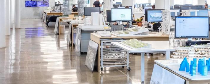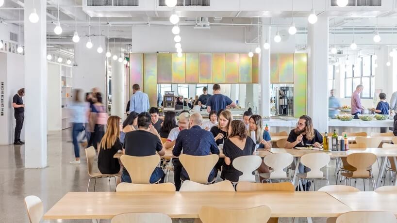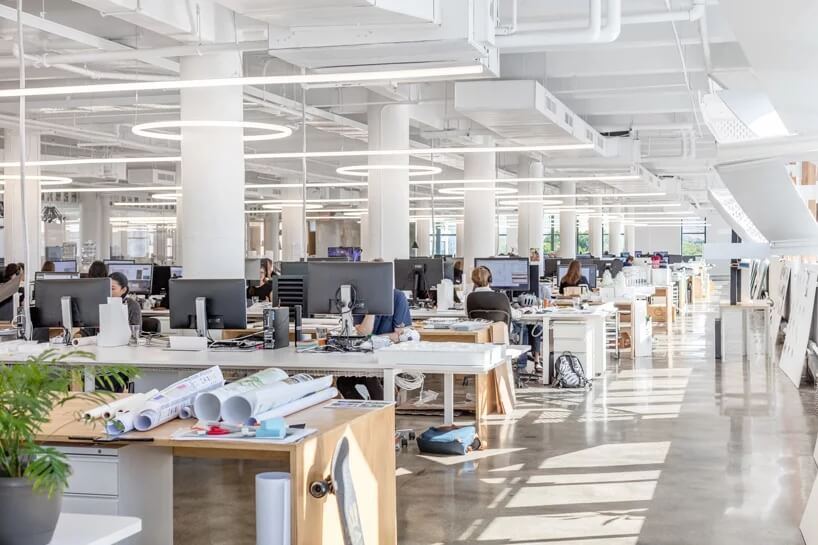 今天分享的是BIG在DUMBO的纽约总部空间设计揭幕,这个5万平方英尺的工作室占据了街区的大部分,一层可以容纳250多名员工,室内有很大的发展空间。由于复兴的工业区位于纽约东河沿岸,开放式工作室的连续玻璃窗可以欣赏到邻近曼哈顿天际线的全景。由BIG室内设计团队设计和规划,其室内特点是利用重复的设计元素,使得开阔的室内空间产生连续性美感。一起欣赏