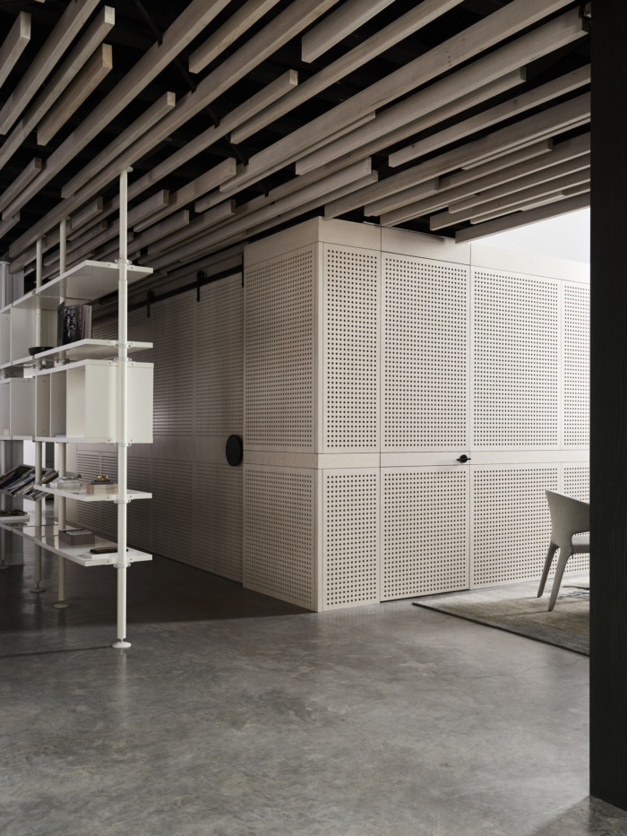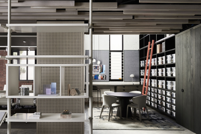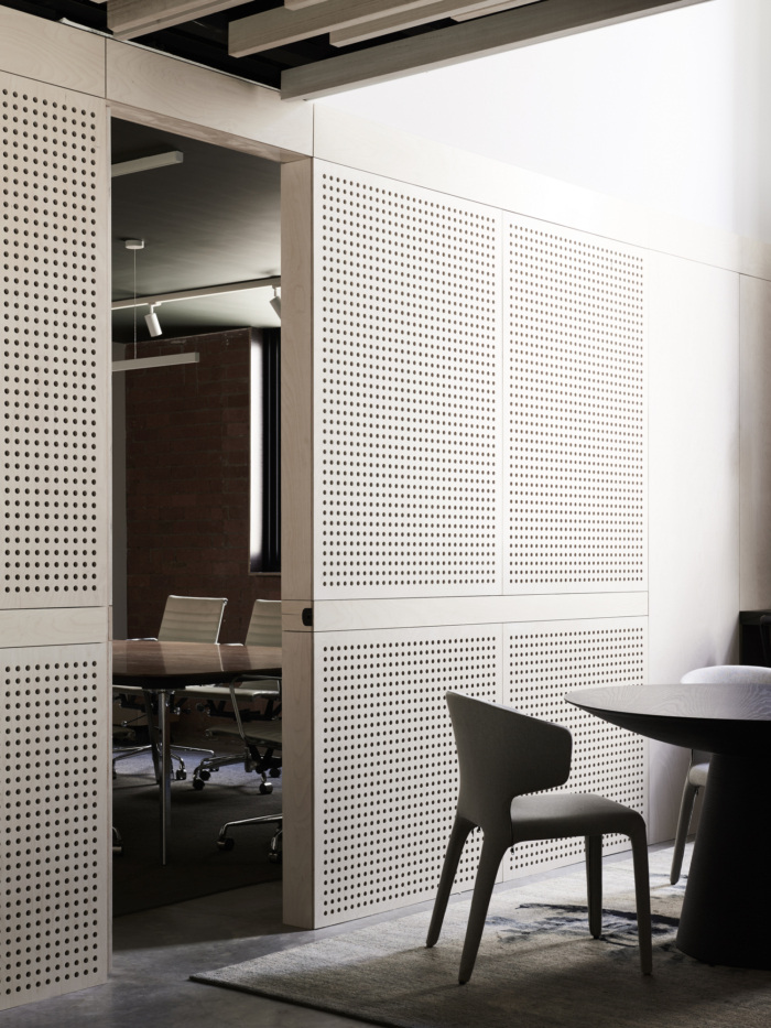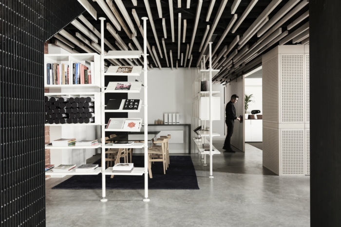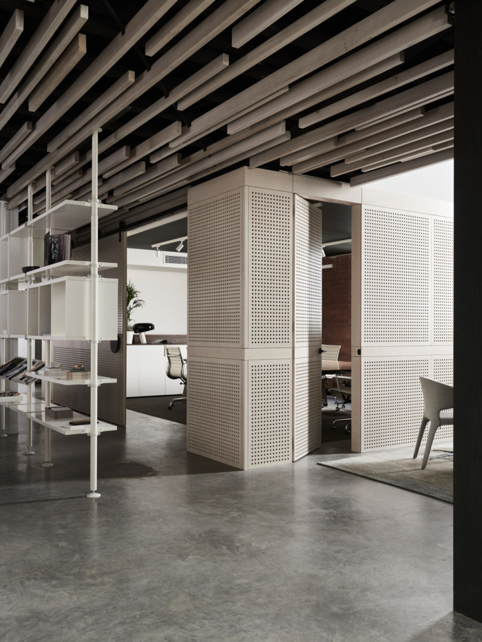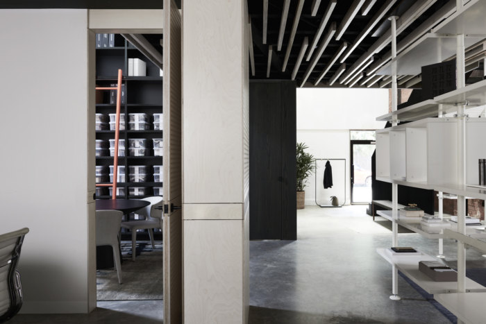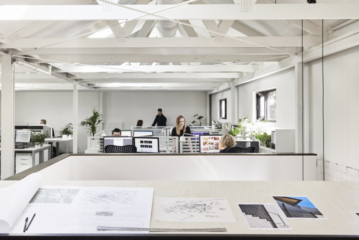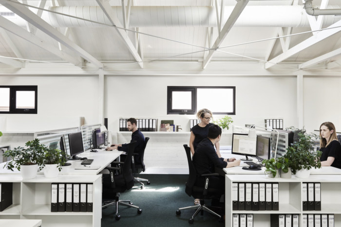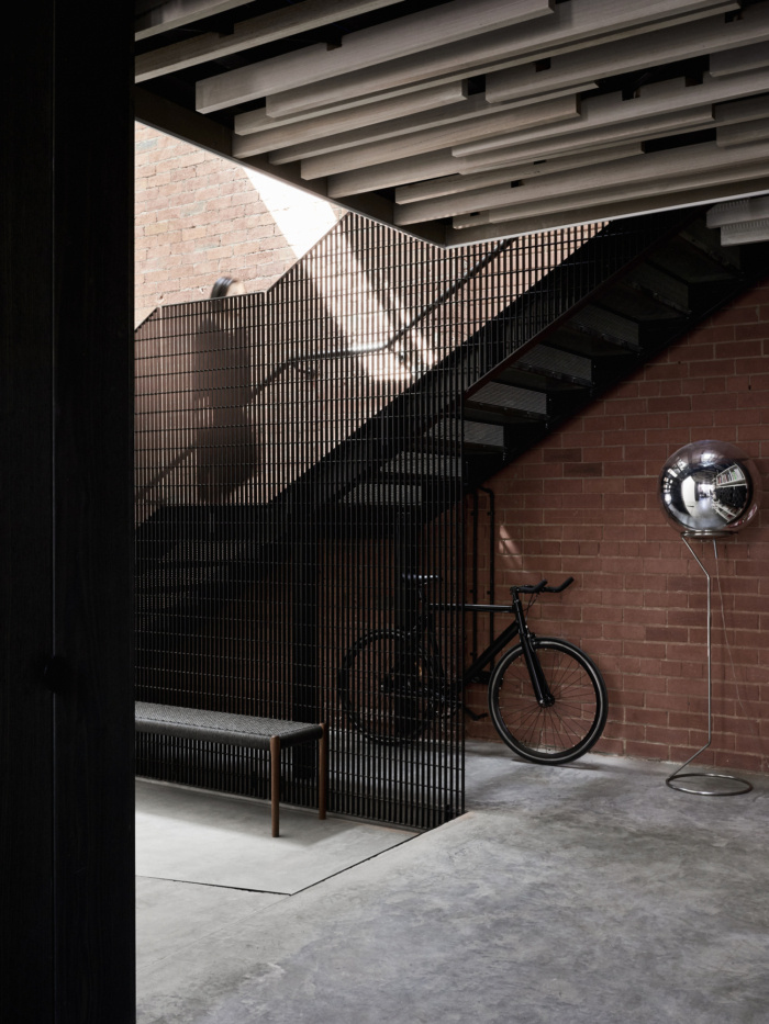 今天分享的是由BayleyWard将位于澳大利亚墨尔本上世纪30年代的一家砖厂改造成了他们的新设计工作室的案例,一个独立的钢框架被插入,以支撑夹层,可容纳多达30个工作站,阳光通过天窗和两侧的窗户照射进来。夹层下设有一系列会议和协作空间,带有滑动屏幕,可灵活使用和日光穿透。夹层的后部装有淋浴间/卫生间/和储存室。主要工作空间光线充足,通风良好的简单的国内桁架和钢架的新屋顶与螺旋交流管道系统一起暴露在外。天窗柔和的滤光片可以遮挡阳光的直射,同时通往巷道和Chessell街的新窗户可以看到CBD的天际线,并提供交叉通风。工作台、储藏室和基座是白色的,与深绿的单色地毯地面形成对比。协作空间和设计审查在高级内置布局表中进行。夹层下的会议空间设计得很灵活。样本展示和存储是划分的一部分,允许设计师和客户在丰富,创造性和非正式的环境中相遇,以发展创意。董事会会议室开放,并拆除了走廊,为大型办公室聚会创造空间。厨房,淋浴间和卫生间空间延续了非正式主题,并添加了新元素和工业细节。欣赏图片