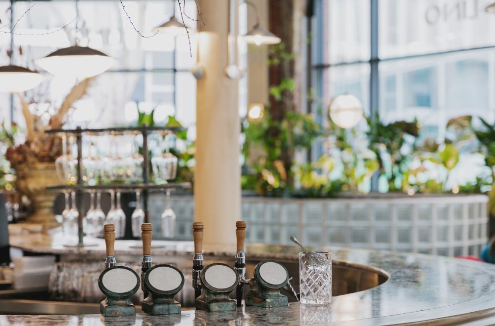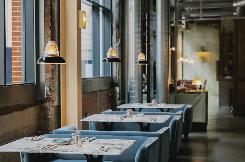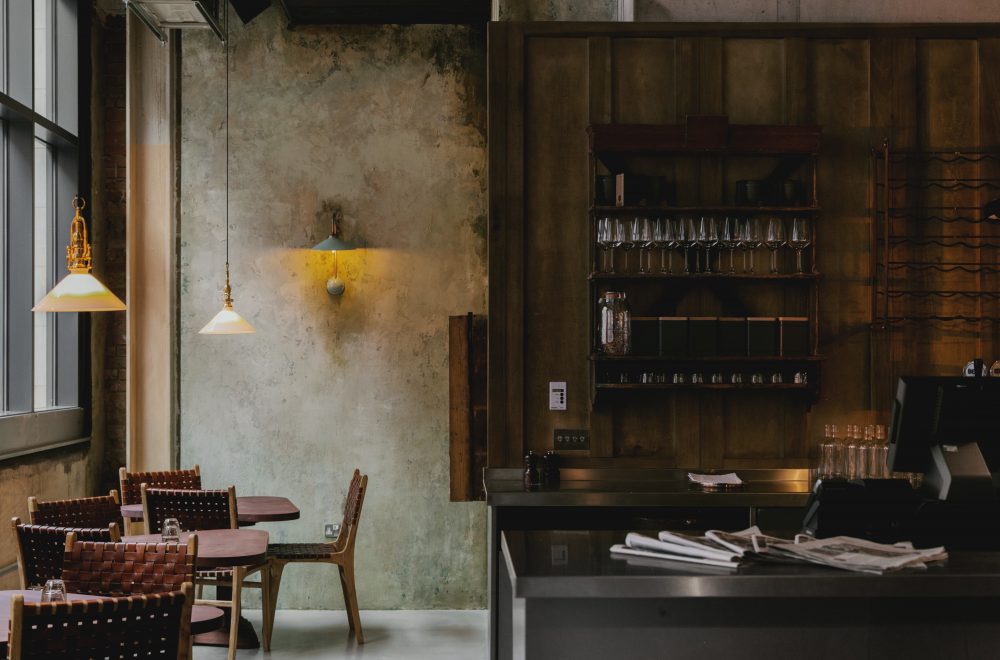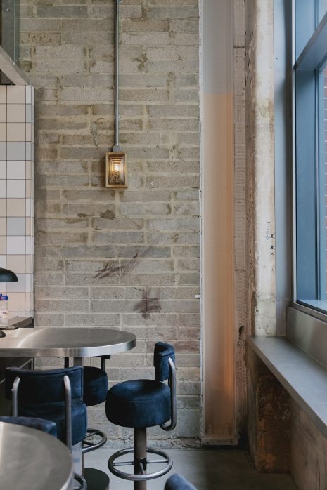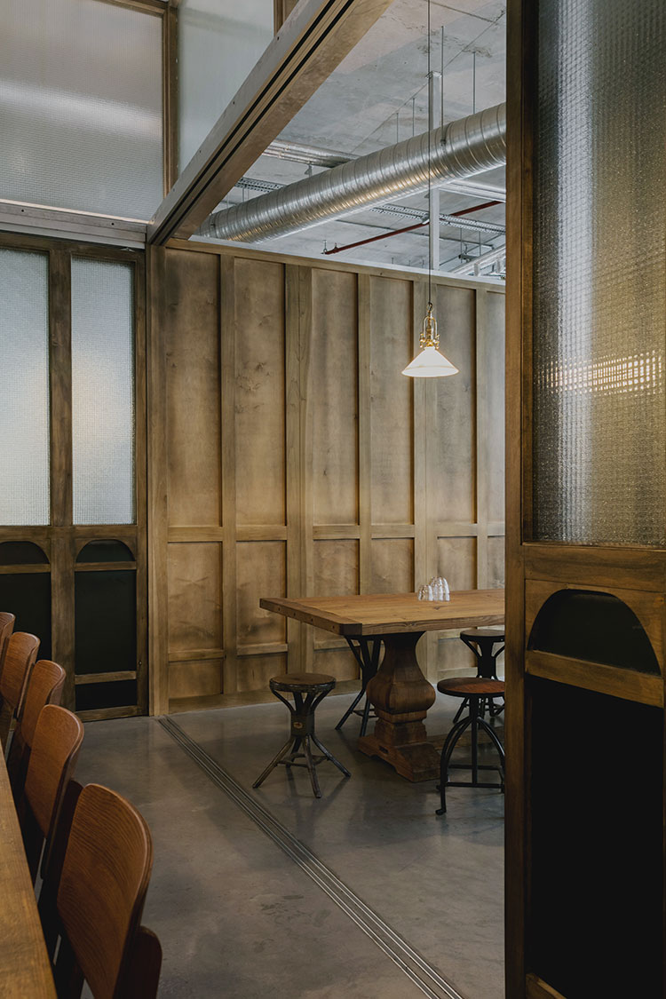 今天分享的是一个改造的案例,位于伦敦Square Mile的一家新的全天餐厅酒吧,坐落在一个废弃的加工油毡和地毯仓库中,这里充满了工业遗产。由红砖改造的仓库外部覆盖着上世纪50年代的棕色釉面瓷砖。最初的工厂窗户和12英尺高的工厂门也被保留下来,他们是设计工业美学中的核心。从回收的灯具到可持续材料的使用,餐厅为Lino带来了一种环保的理念。室内有现代的光线、通风的仓库风格和受到斯堪的纳维亚的影响。该空间用裸露的钢梁、抛光的混凝土地板和通风设备剥离回原来的仓库风格,以三叶草形状的酒吧为特色,是该空间的焦点。雕刻打蜡的郁金香木条形大理石顶部和瓷砖外部设有带桃色和灰色色调的纽扣式皮革酒吧凳,作为餐厅座位的中心,位于空间的四周。定制家具设计贯穿整个空间,柔软的蓝色天鹅绒软垫沙发和法式餐厅风格的大理石桌子,凹槽棕褐色皮革长椅和木制吧台。空间的特色是酒吧在一个质朴的木制空间中,混凝土墙旁设有大型木桌、学校椅和金属凳,而三角形咖啡桌和丹麦风格的编织皮革座椅则排列在大工厂的窗户旁。精致的不透明玻璃、黄铜吊灯和回收的工业壁灯装饰了咖啡馆空间,作为私人用餐区。欣赏下图