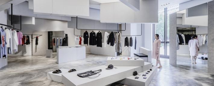 今天分享一个潮牌专卖店。台北Christian Dada旗舰店是日本以外的第二家著名时装品牌专卖店。150平方米的空间以“废墟”为设计理念——在新加坡的第一家海外商店展示了品牌的日本起源,并与其他奢侈品牌区别开来之后,更注重“达达主义”这个品牌的大概念为了让人想起被毁坏的地方:墙壁被毁坏,地板因漏水而湿透,光线从屋顶上的洞口流出。设计提出了一系列从地板和天花板随意伸出的墙壁,未经处理的黑色钢管,高光泽砂浆地板和Barrisol天花板。墙壁将空间轻轻分开,邀请顾客四处走动,同时创造出不同的区域,帮助按故事、性别、外观等分类。未经处理的悬挂服装钢管可拆卸,适用于安装,性能和时装表演等。在正常使用中,墙壁由原水泥板制成,是一种基材。这个决定是在施工阶段做出的,当时我们在现场发现“未完成”和“废墟”在背景上是相反的,但实际上看起来很相似。设计师在选定的墙壁上进行特殊处理,亲自涂抹砂浆,完成了空间。一起欣赏