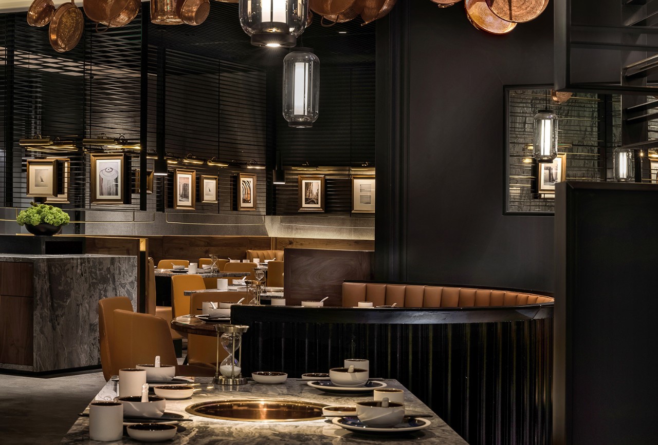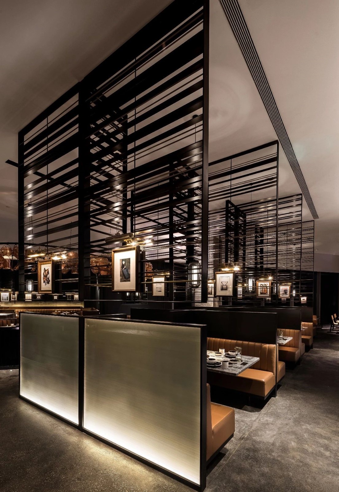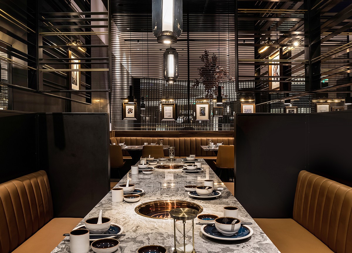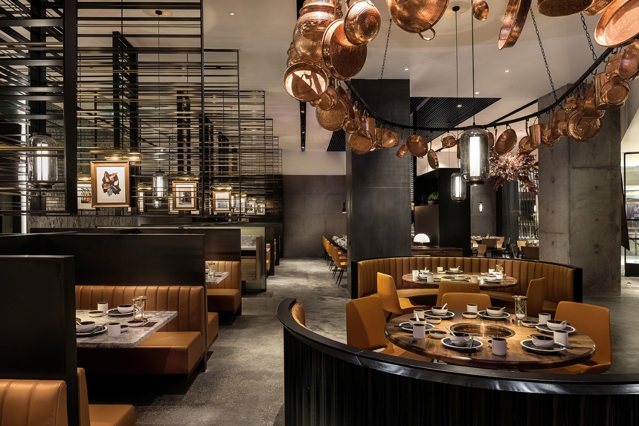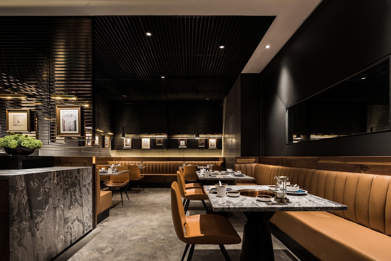今天分享一家位于厦门万象城的椰子鸡火锅的餐厅,为了营造美食与艺术碰撞的氛围,设计师引入艺术陈设的设计概念。基于简约设计的原则,设计师用朴素的材料和精致干练的造型赋予该项目全新的空间体验。只有将食材色彩两者最大限度融合的地方,才能给人以“食”之最高享受,设计置换了橱窗展示手法来展示餐厅的特有文化。大厅空间置入悬浮屏风,围合出不同的就餐区域,每个就餐区域间隔而有透,让食客的视线在整个空间中游离。加上黑色不锈钢的装饰,令空间增添高贵典雅的气派。成一体的黑铁+木质不再是简单的陪衬,反而与皮布家具争奇斗艳,不同主题挂画丰富了空间的艺术氛围,让食客在就餐体验如同置身于美术馆。调动食客身上每一个细胞,让人们只想回归于食色性也的本质,吃个爽快。既能让食客专注的享用美食,又能在食客抬眼的瞬间感受艺术的魅力。更年轻的,更时尚的,甚至是更国际化的表达,锲合不断更新迭代客群,最高级表达就是“大道至简”。无处不在的点睛细节也冲淡了浓郁色感容易带来的审美疲劳,令食客们得以更舒适地享受用餐时光。一起欣赏