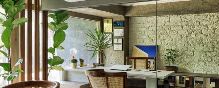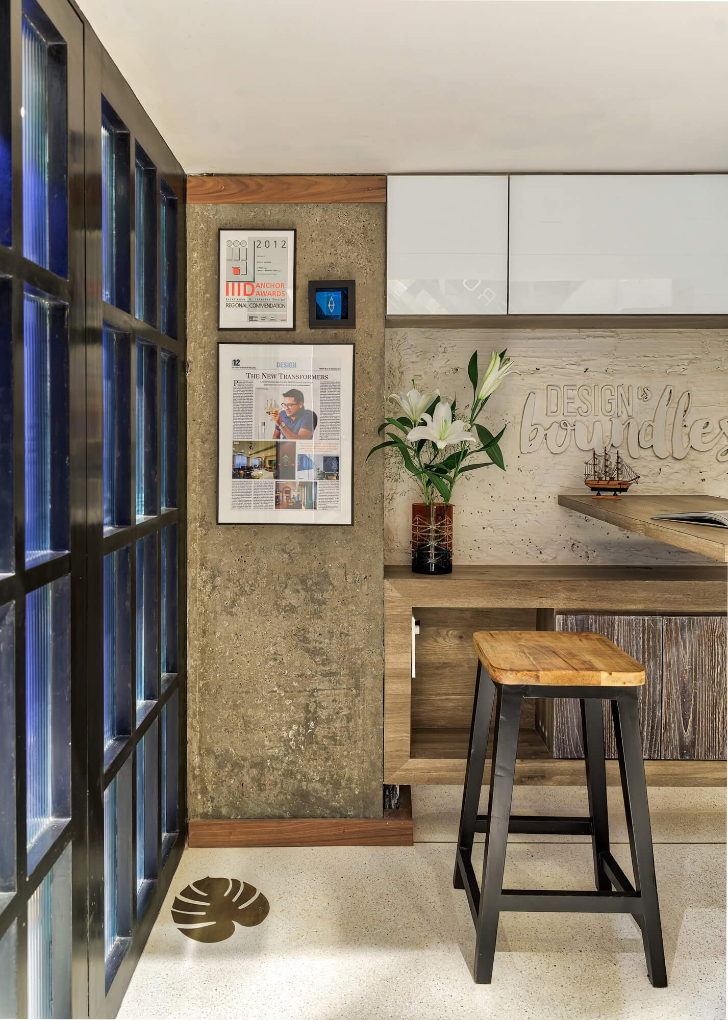 今天分享的是ZERO9位于孟买的一个办公室空间设计,ZERO9为他们位于印度孟买的办事处设计了一个办公室。这个150平方英尺的办公室为其它设计公司就如何设计小空间以满足工作需求,同时还可以给人留下深刻印象提供了一个完美的例子。白色水磨石地板镶有黄铜叶子。白色的地板、抹灰墙和白色的储物柜使空间看起来很宽敞。一起欣赏