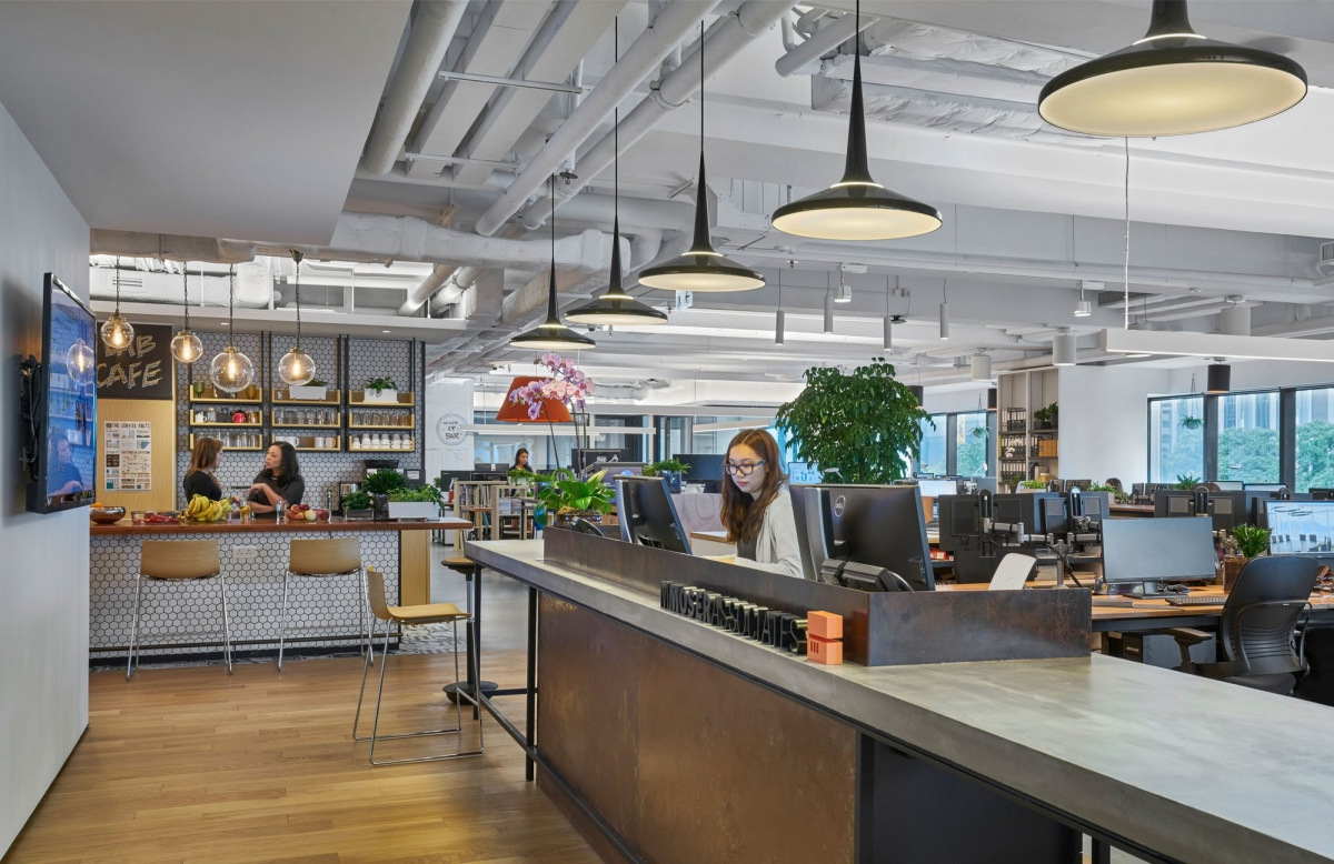 今天分享的是M Moser Associates设计了位于香港的新办事处。M Moser新空间的主要愿望是培养一个协作,高效和充满活力的工作环境,最大限度地利用未实现的空间、光线和景观。空间拥抱自然,以充满活力和独特的方式激发员工创造力。新的办公空间融合了绿色植物和自然光线。储物柜被放置在战略位置,以便为个人物品提供场所。设计最终结果真实地反映了M Moser作为可持续性设计和建造领导者的身份,其中自然元素融入了工作场所的每个角落。通过这样做,它为员工提供了更高的舒适度,使他们更高效的工作,取得良好成绩。一起欣赏