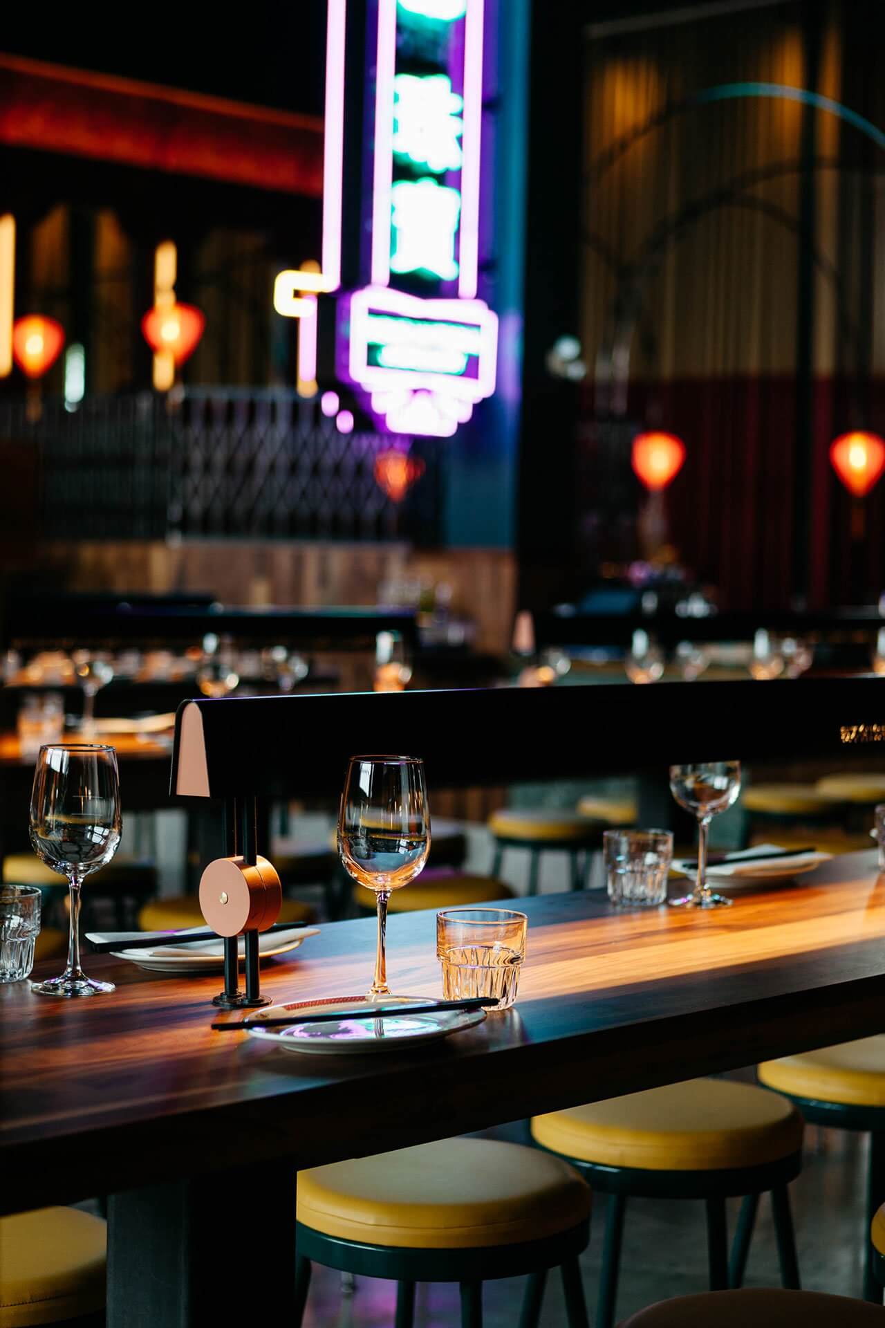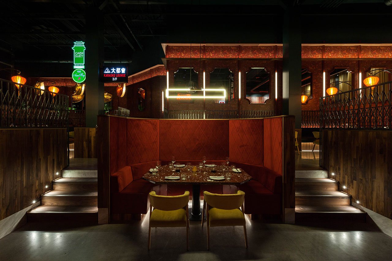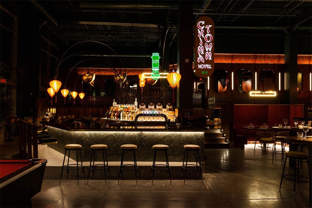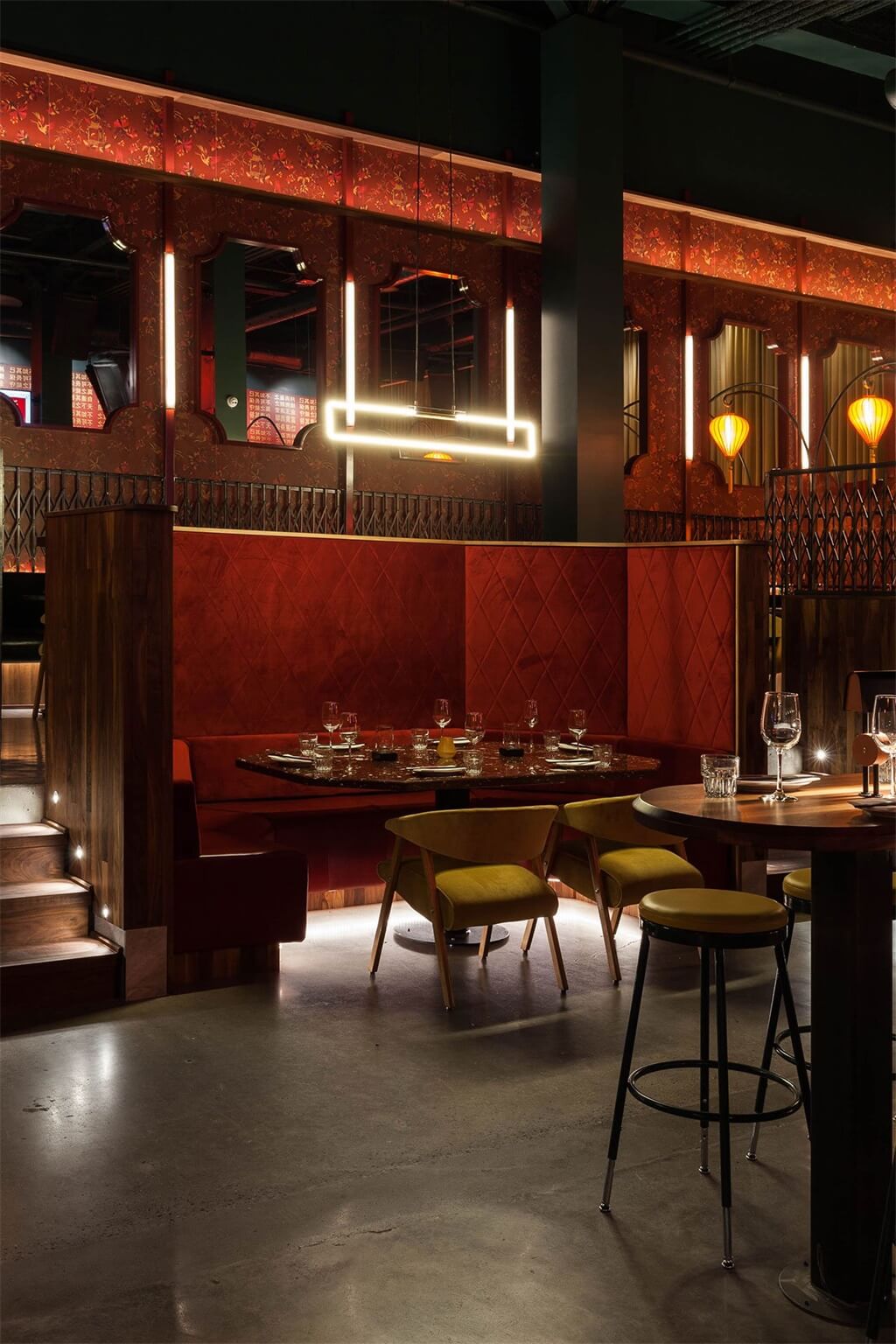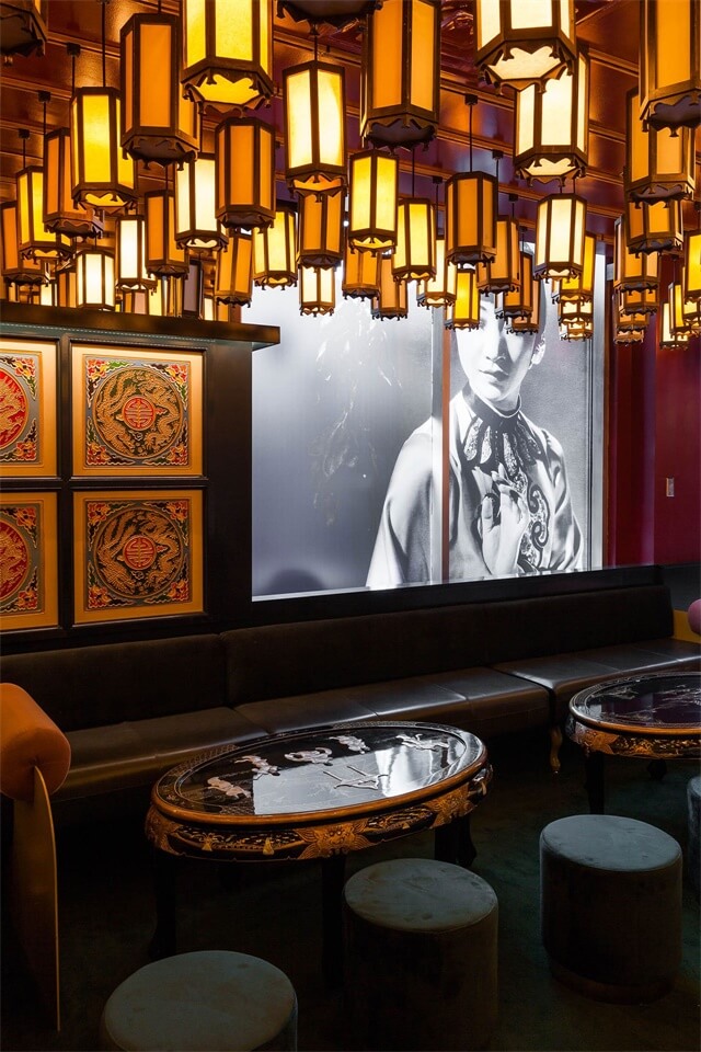 今天分享一个位于加拿大的怀旧港风中式小酒馆。Miss Wong位于蒙特利尔附近的魁北克市拉瓦尔,曾是一家夜总会,现在是一家受远东都市异国情调启发的亚洲新餐馆。该餐厅以着名的20世纪20年代和30年代美籍华裔女演员Anna May Wong命名,由蒙特利尔工作室MénardDworkind建筑设计公司(MRDK)设计,反映了香港本世纪中叶的东方繁荣。建筑师GuillaumeMénard和David Dworkind利用场地的大中央空间,打造了自己怀旧版的香港街道,配以五颜六色的霓虹灯招牌、经典的折弯剪刀门、玉石图案的墙壁和悬挂的灯笼。一起欣赏下
