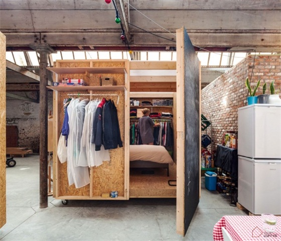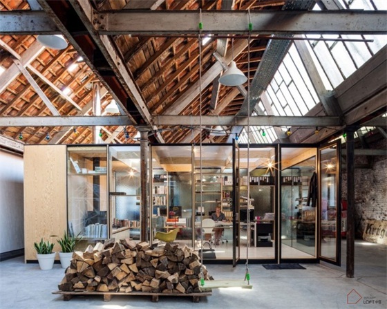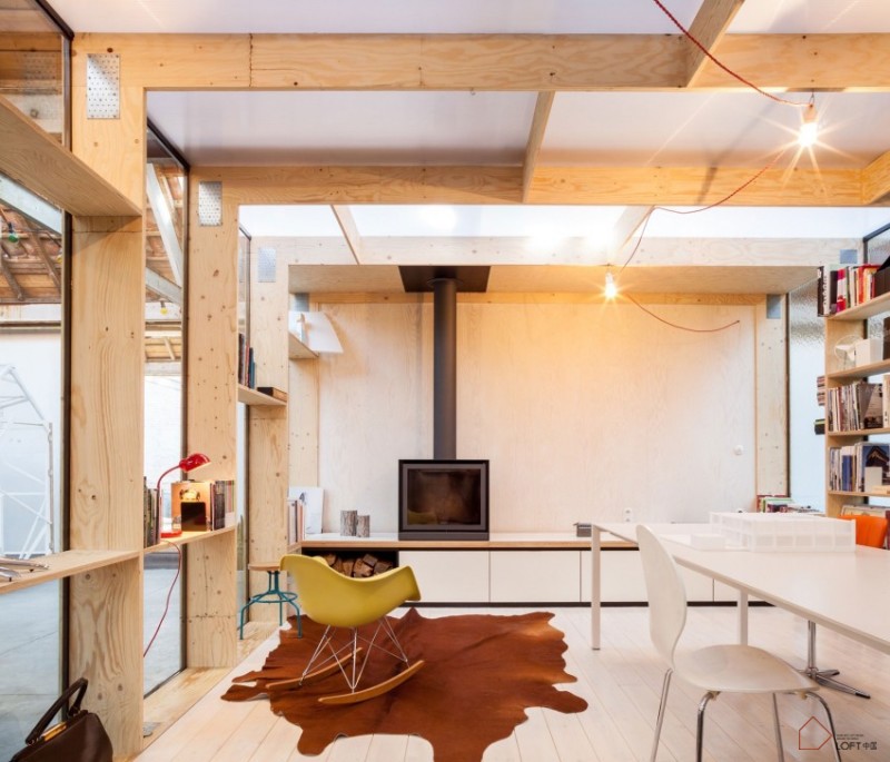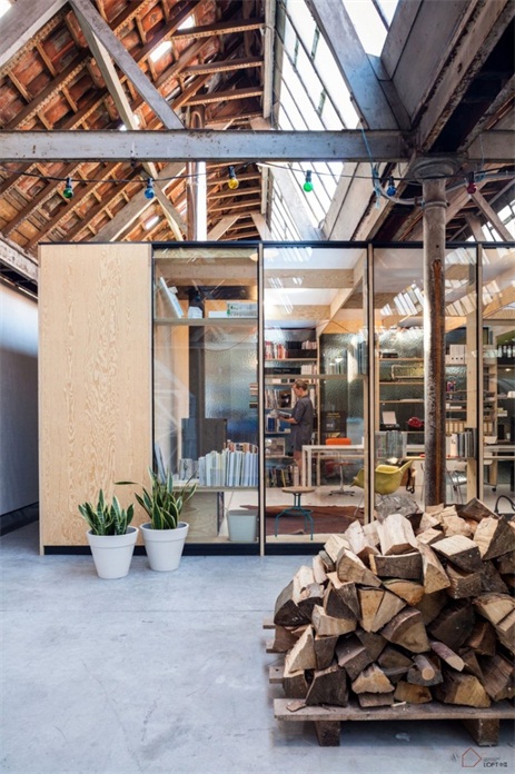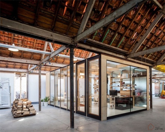 今天分享的是一家废弃工厂打造后的案例,这所办公空间位于比利时Waarschoot,其前身是一个建于1880年的纺织厂,设计师Julie D’Aubioul将这座废弃工厂打造成如今你看到的样子。这座在前主人眼中毫无价值的建筑,却让设计师和男朋友一眼相中,那些铸铁柱子和高大的天窗,深深吸引了他们。这栋老建筑翻新工程,以可持续作为主旨。建筑中的附加物在将来都是可移除的,而原有的建筑结构则不会受到任何损坏。设计师将工厂分为两部分,一部分用来建设居住的房子,另一部分则作为设计师开放的工作室和她男友的车间。在整个改造完成之前,他们在车间内搭建了一个箱子作为临时住所,住了进去。一起分享