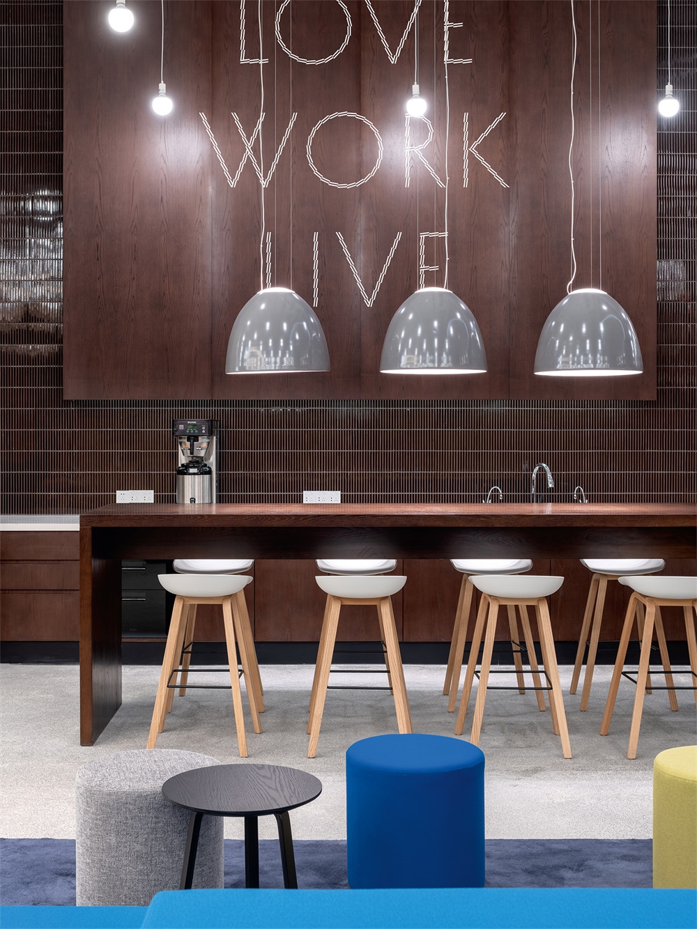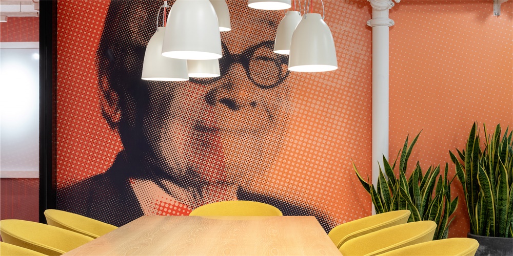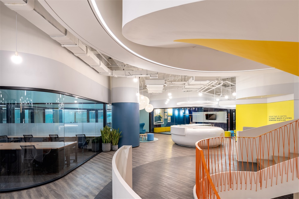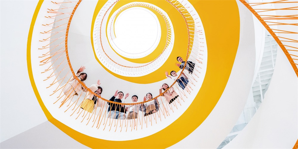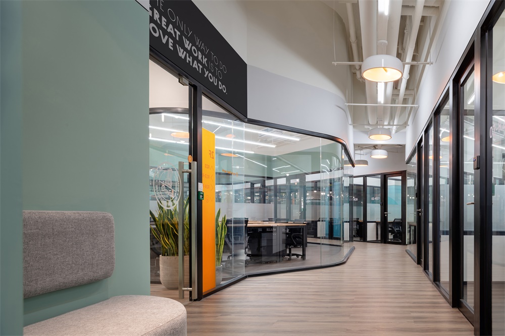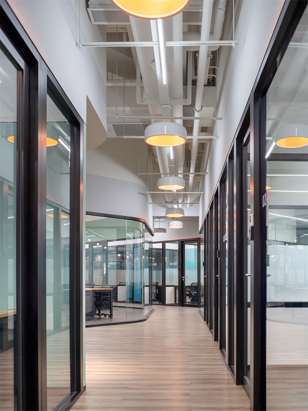 大厦中的每一个楼层均有专属的颜色和主题。各层的主题围绕着名人展开,例如著名的“行动派”乔布斯、马云及贝聿铭等。各个名人的艺术肖像点缀了整个墙面,为每个楼层赋予不同的个性。每个楼层采用的不同几何图案和色彩设计也增加了对比性,为不同行业和领域的人群提供了激发灵感的多样化工作环境。