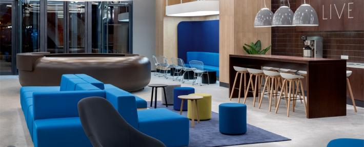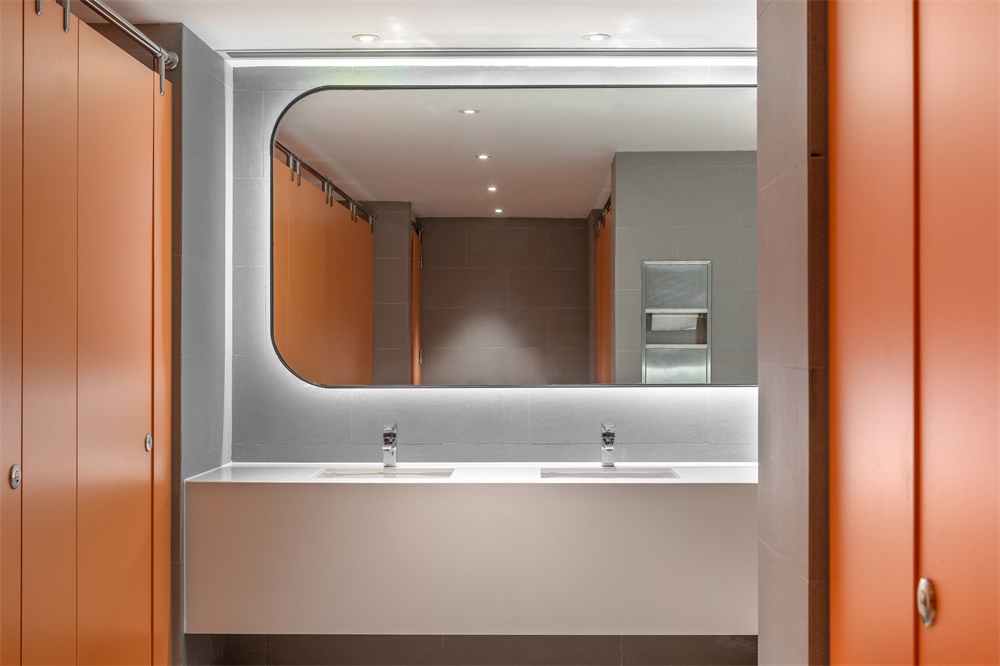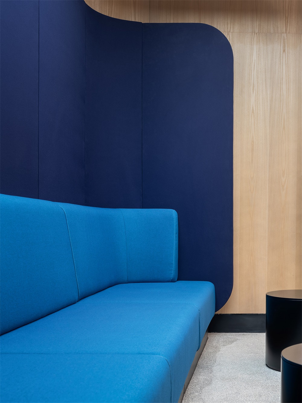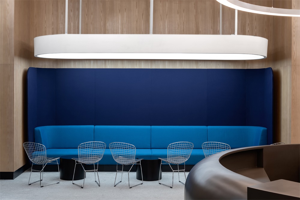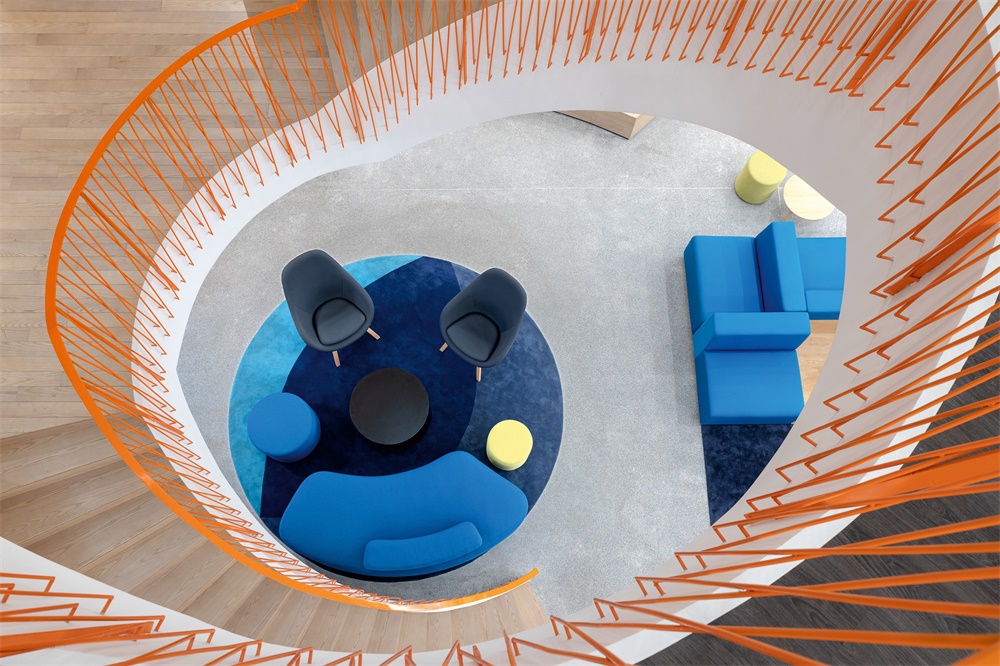 进入一层大堂,首先会路过一个“校园区”。它内设一个夹层,构成整座大厦的核心。人们在这里畅谈业务、聆听讲座,或平静而简单地享受闲暇之余。大堂中间的旋转楼梯连接大厦各个楼层的公共空间,构成建筑当中的另一个核心元素。它将各个楼层融为一体,使整个环境更加活跃。