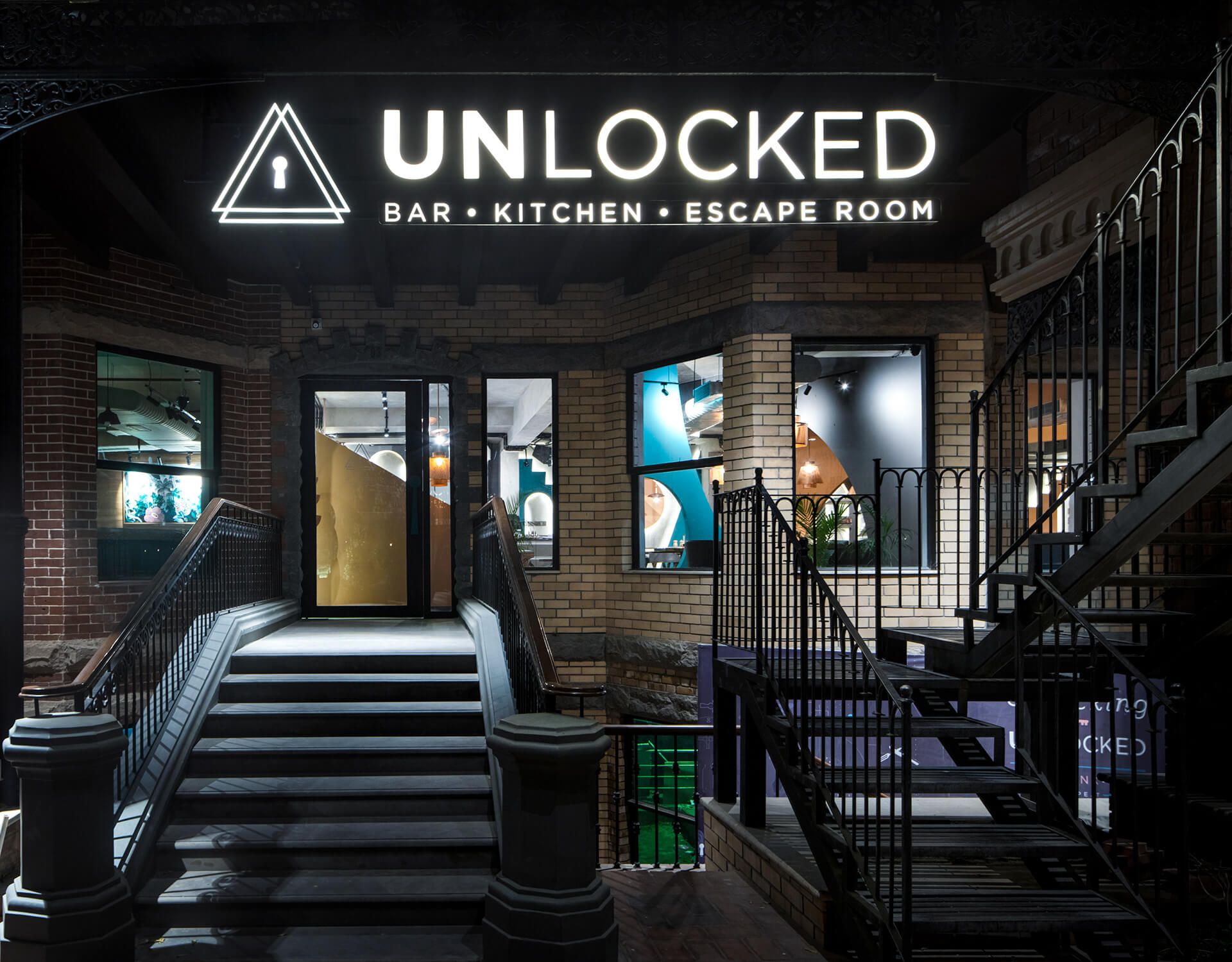 分享一个游戏主题酒吧案例,Unlocked是一家游戏主题酒吧,其中包括自己的冒险主题逃生室和100多个棋盘游戏的选择。场地以大胆的色调和几何形式为特色,由当地的Renesa工作室设计,瞬间将游客带到了一个不确定的领域。