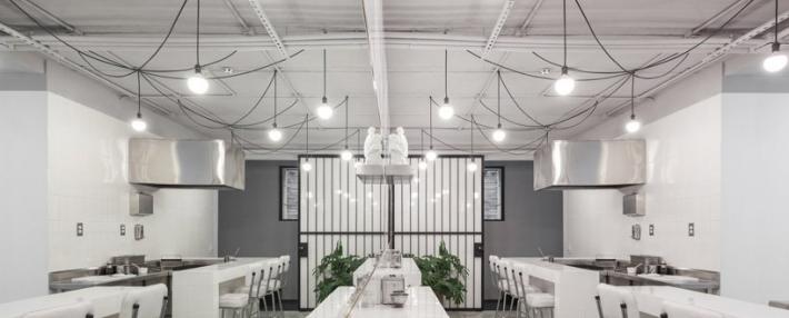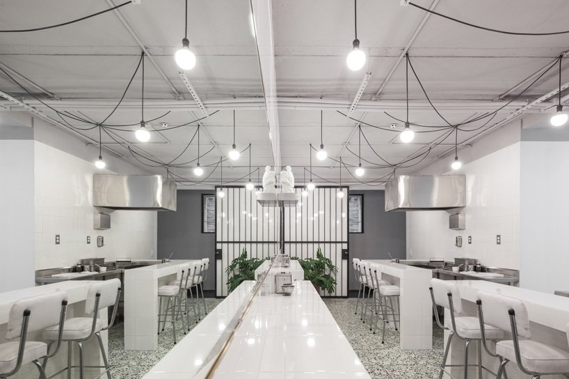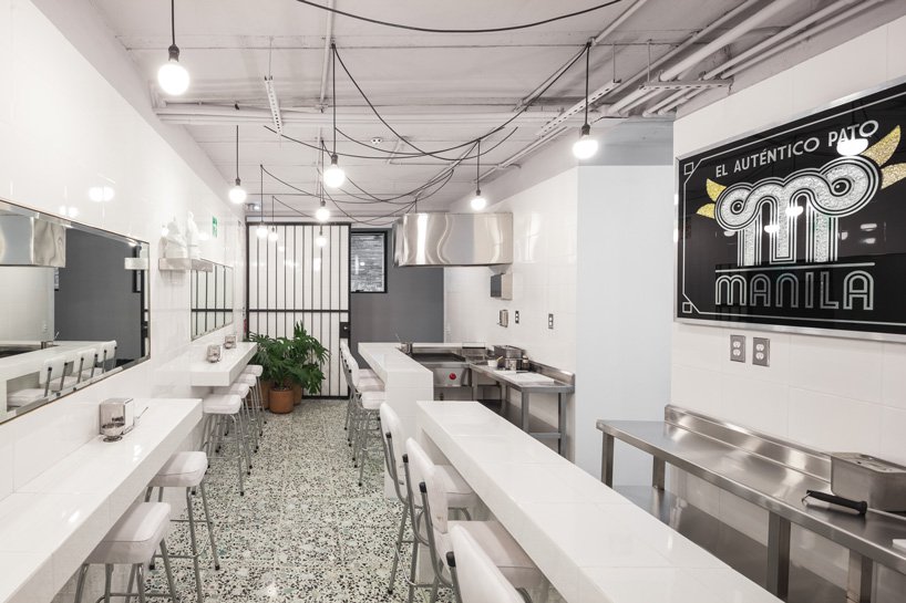 dosa studio和TAAC合作设计了el auténtico pato manila的最新分店——一家供应传统炸玉米饼的餐厅,融合了墨西哥城的亚洲街头美食——将二十世纪早期庄园的地下室改造成现代的墨西哥快餐馆。46平方米的室内以开放式厨房为特色,这是餐厅的核心,定义功能和流程;而墙上长长的镜子,给人一种宽敞的感觉。