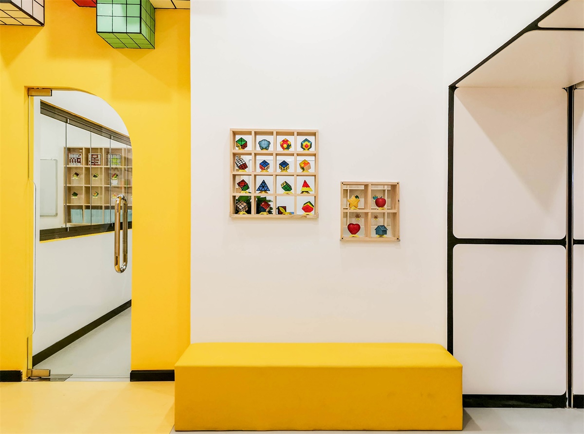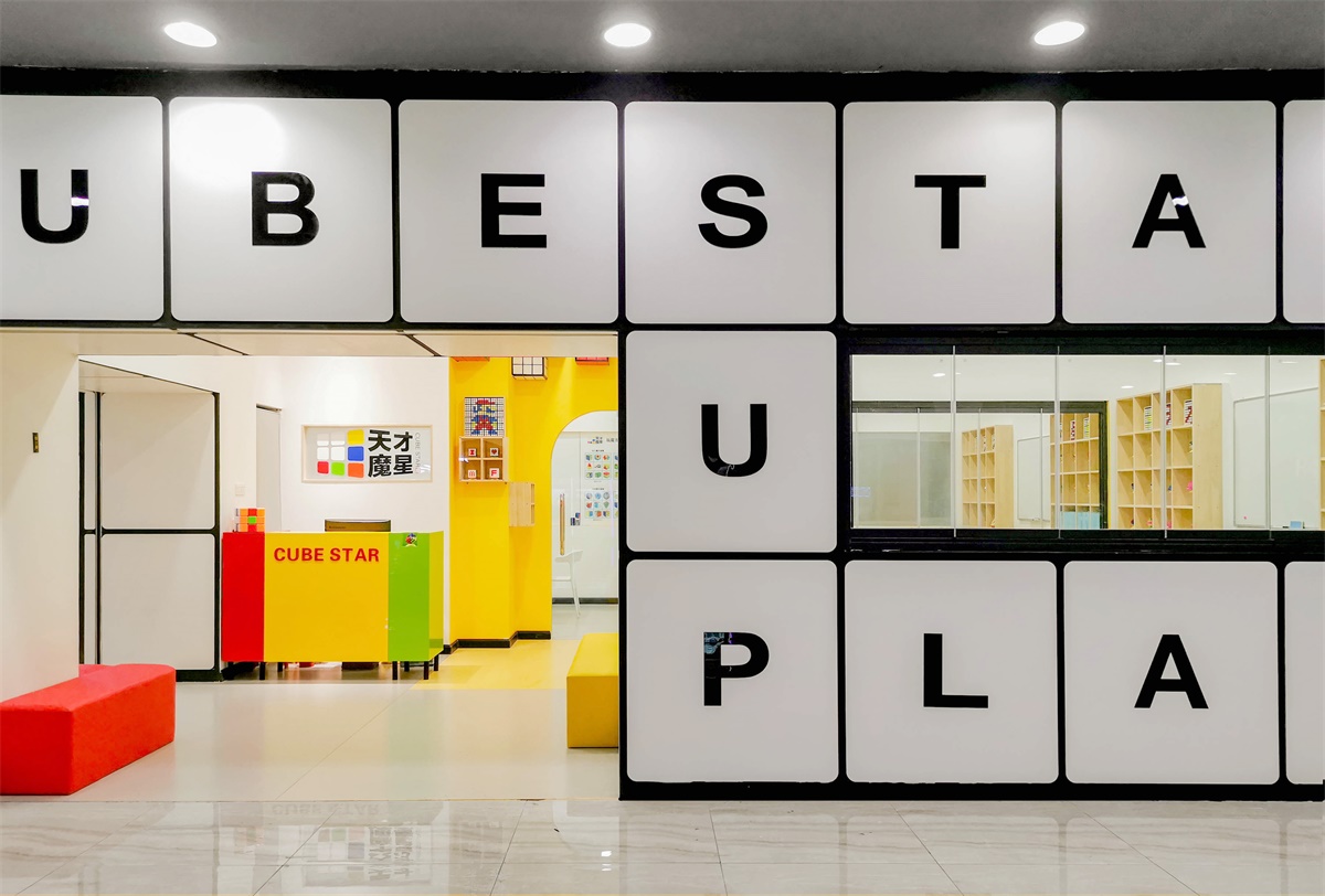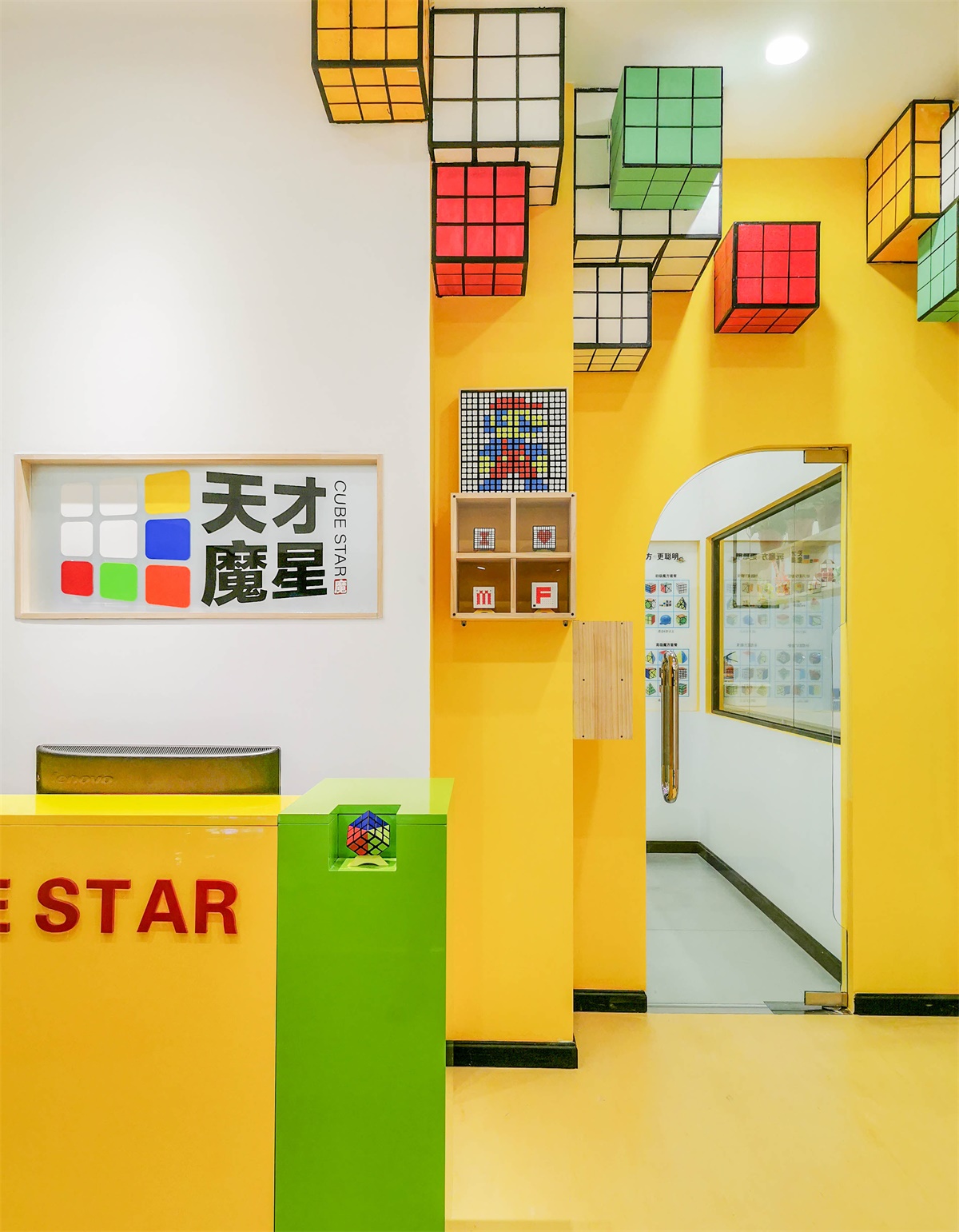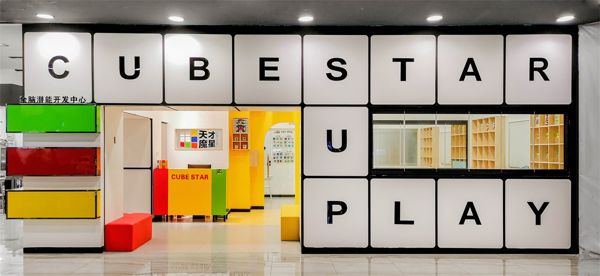 【天才魔星】全脑潜能开发中心,是专注于0-12岁儿童脑力潜能开发的专业培训机构。拥有天才全脑、天才魔方、进阶烧脑等创新脑力开发课程,为儿童各个成长阶段中所需的脑部发育提供针对性的引导性课程,根据课程的设置,由经验丰富老师进行一对一或一对多授课,注重从兴趣培养儿童的脑部开发。首家商场旗舰店于今年八月份正式亮相。首次介入魔方设计,我们希望在设计中能找到品牌的DNA,为品牌建立起其独特的空间特质。对于品牌,我们力图挖掘出一种可称为“爆点”的文化符号或空间语言来打造一个教育网红打卡点,并持续不断更新及迭代,创建品牌应有的氛围及独特的气质。