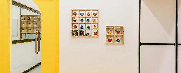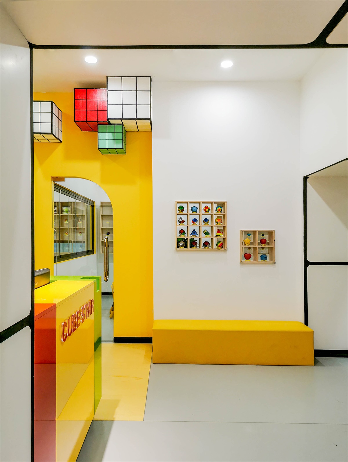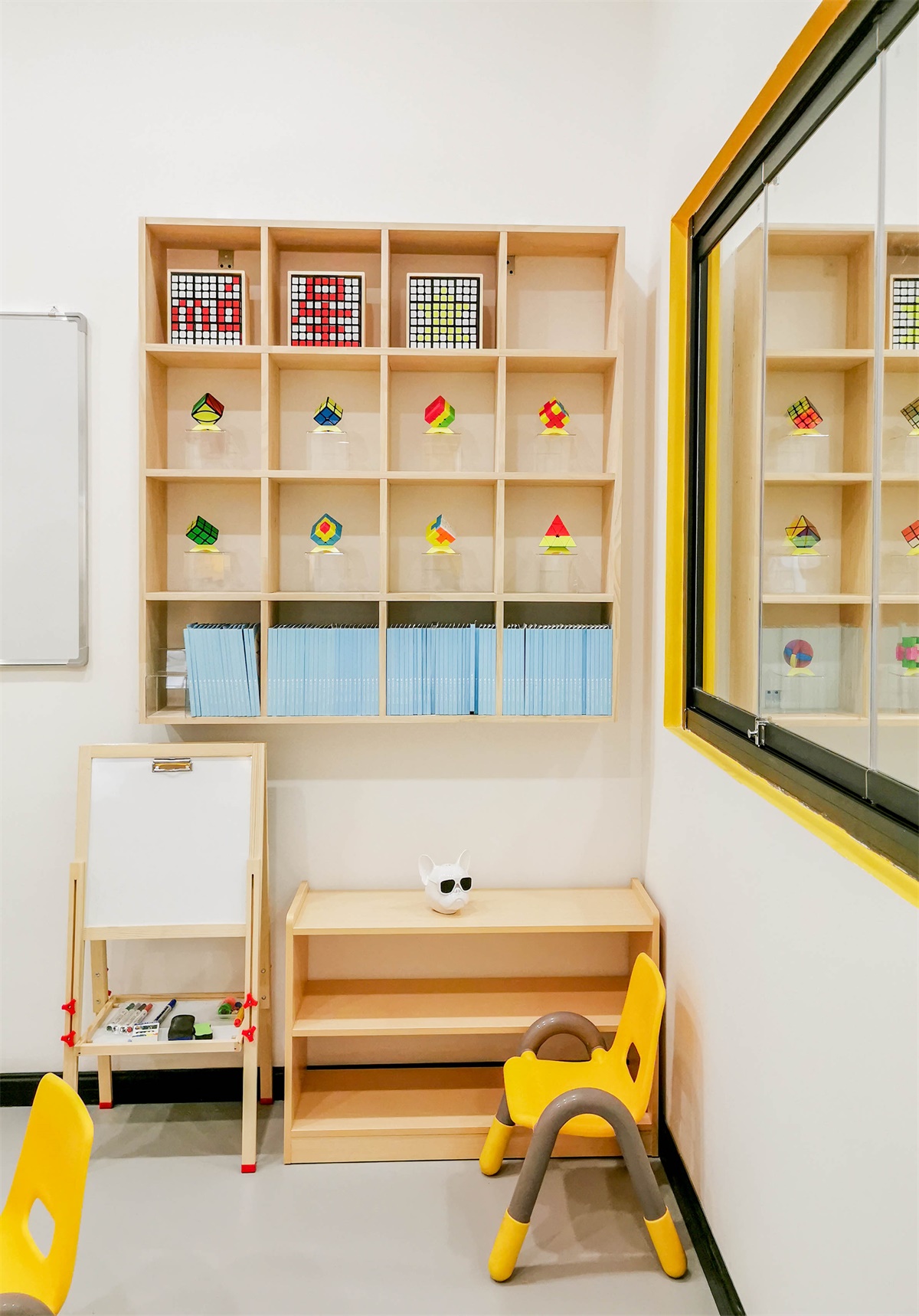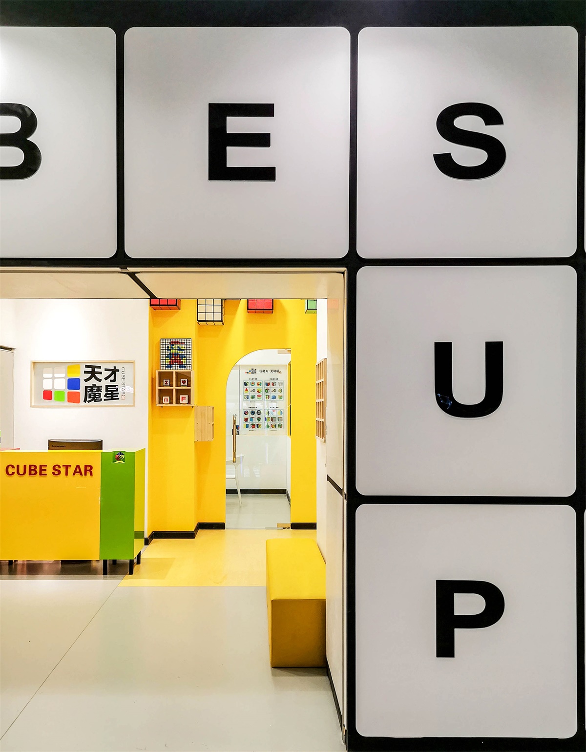 【天才魔星】全脑潜能开发中心,是专注于0-12岁儿童脑力潜能开发的专业培训机构。拥有天才全脑、天才魔方、进阶烧脑等创新脑力开发课程,为儿童各个成长阶段中所需的脑部发育提供针对性的引导性课程,根据课程的设置,由经验丰富老师进行一对一或一对多授课,注重从兴趣培养儿童的脑部开发。首家商场旗舰店于今年八月份正式亮相。首次介入魔方设计,我们希望在设计中能找到品牌的DNA,为品牌建立起其独特的空间特质。对于品牌,我们力图挖掘出一种可称为“爆点”的文化符号或空间语言来打造一个教育网红打卡点,并持续不断更新及迭代,创建品牌应有的氛围及独特的气质。